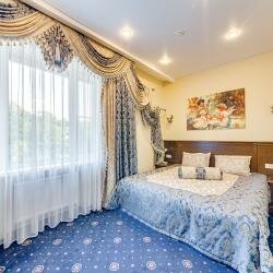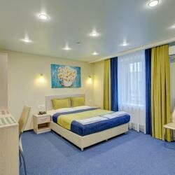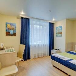 Гостиница предлагает номера по цене от 2000 до 9000 ₽ за ночь, с возможностью завтрака или питания по меню. Заезд — с 14:00, выезд — до 12:00. Дополнительно: камера хранения, прачечная, детские кроватки и круглосуточная стойка регистрации.