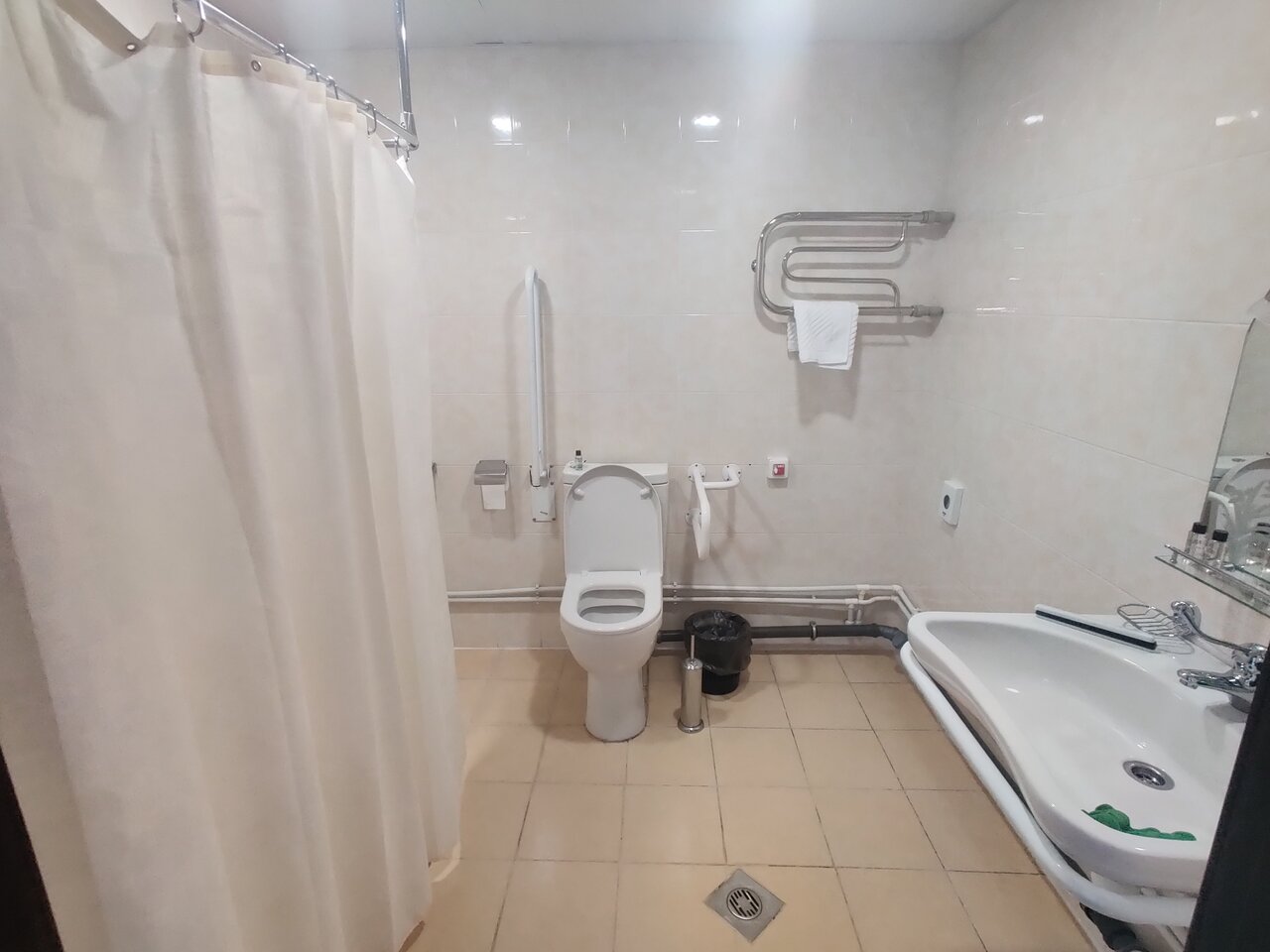 могли бы ванные поставить, не везде работает радио в душевых кабинах. сантехника всегда исправна. уборка на 4 напольное грязновато