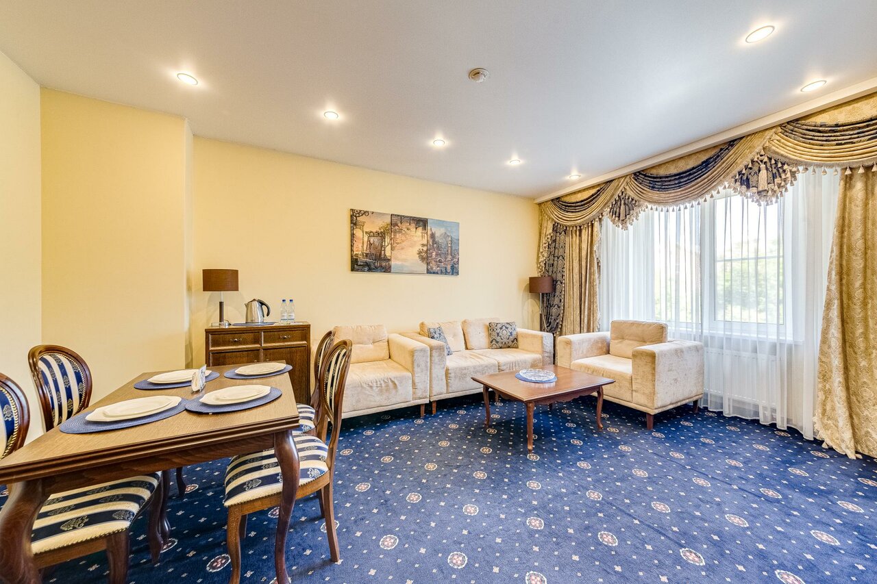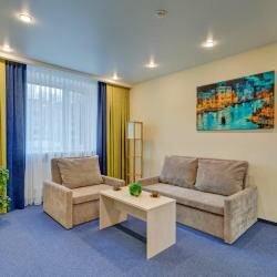 Комфортабельный номер для деловых людей. Номер отличается первоклассной отделкой, кроватью высокого класса, наличием двух больших телевизоров в каждой из комнат. В номере комфортно может проживать до 4 человек.