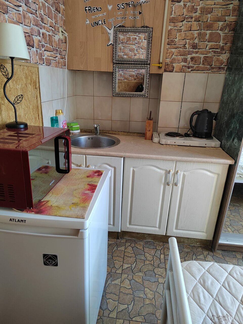 - Хорошие условия за свои деньги (холодильник, микроволновка, телевизор).