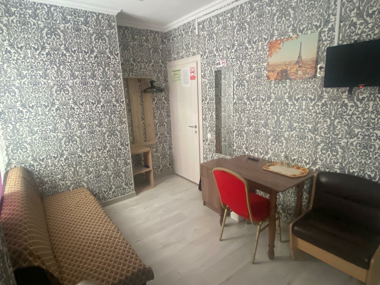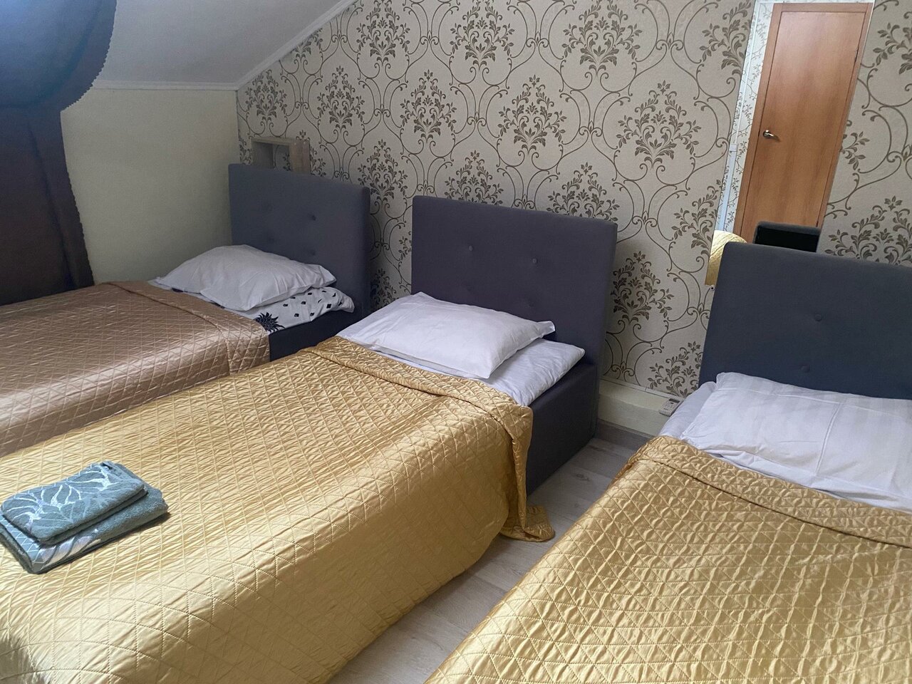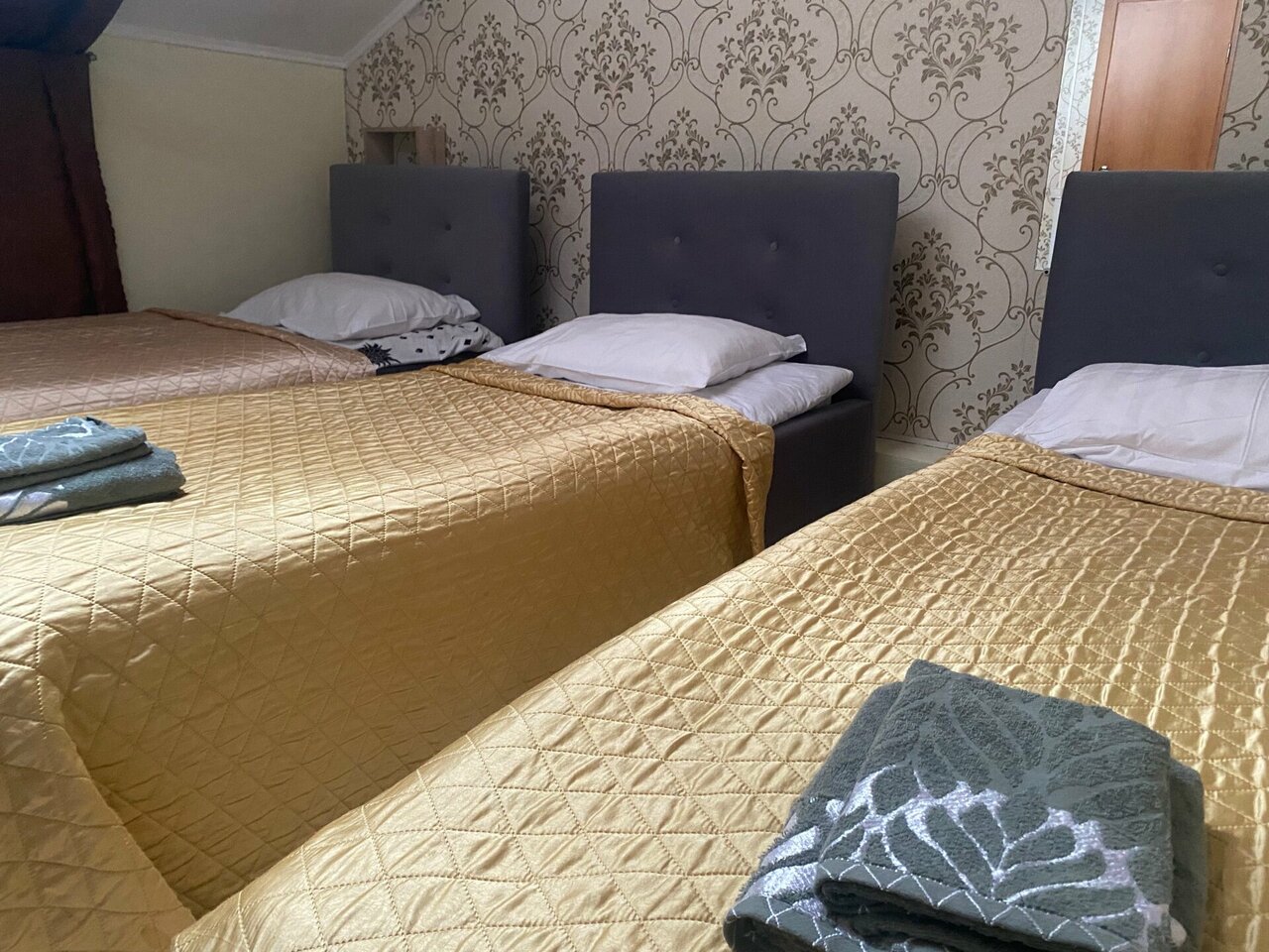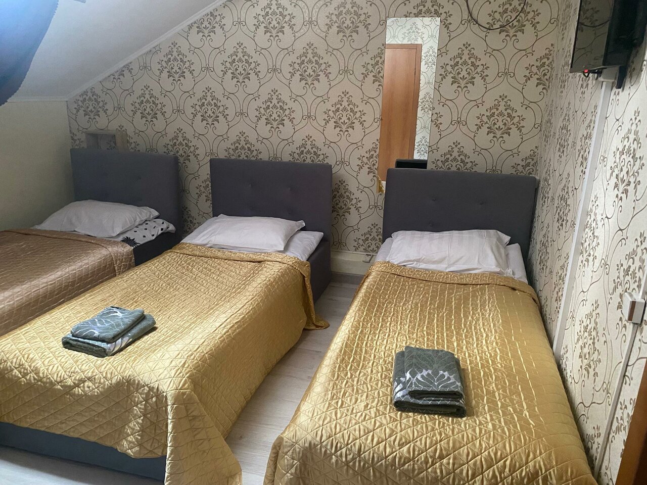 Трехместный номер эконом-класса. На территории гостиницы есть собственная охраняемая парковка (При наличии свободных мест бесплатно, резерв платный 500 рублей в сутки).