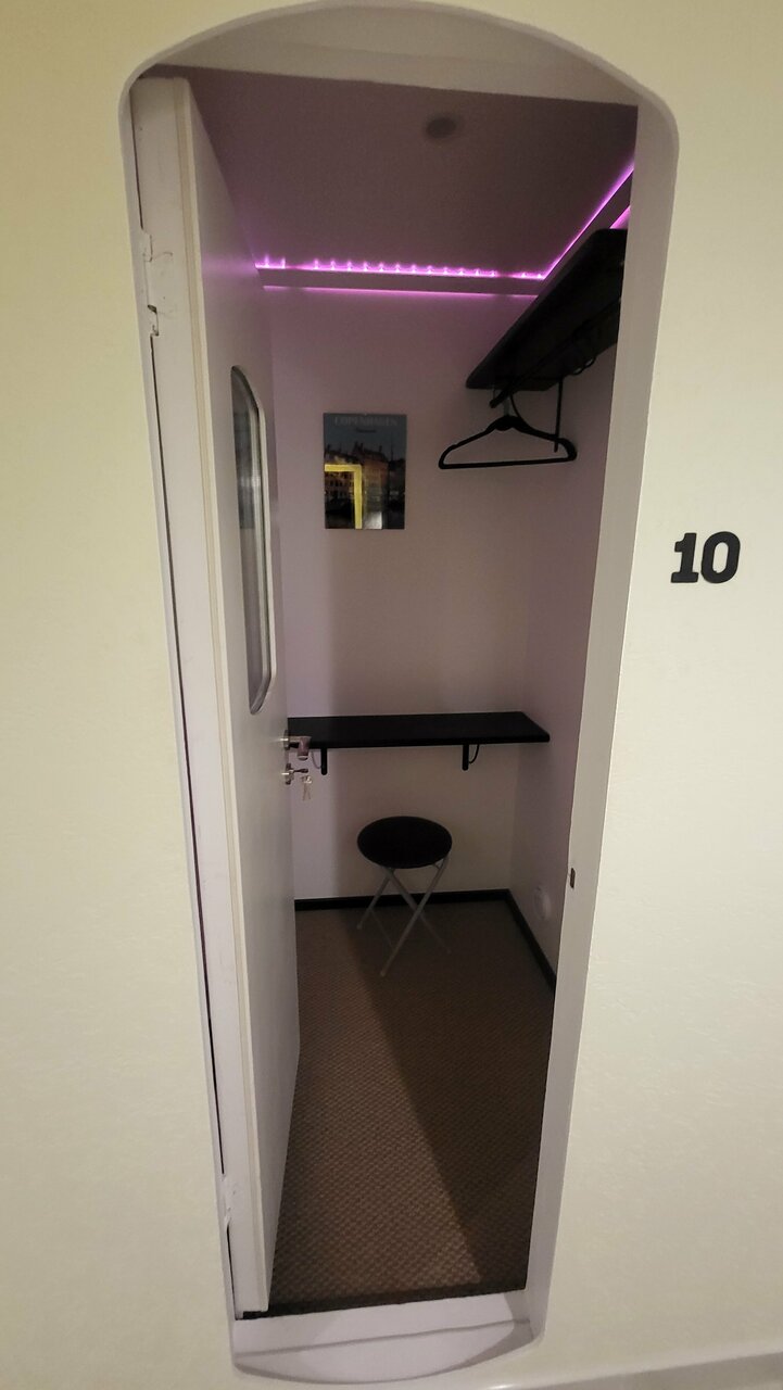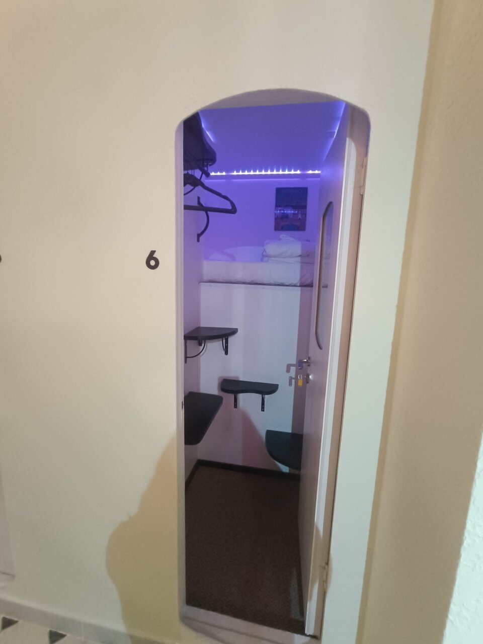 Отель находится в удобном месте, недалеко от центра, добраться пешком очень легко от метро, большой плюс, это чистота, просто идеальная в местах общего пользования и в малюсеньких комнатках, удобная кухня, красивое общее пространство, соседей практически не видишь, постели хорошие вентиляция была достаточной, душно не было в марте, не знаю, как будет летом, так как нет кондиционера, а есть труба с воздухом и вытяжка.единстаенный минус, это слышимость, ты лежишь в своей коробочке, а на потолке кто-то то возится( так как кровать другого номера прямо и над твоей) , за стеной человек похрапывает, слышно телефон на вибрации, но соседи были люди приличные и было довольно тихо, но во порой день 2 подружки решили поболтать за стеной и разбудили пол отеля…. На кухне есть чайник, микроволновка и кофеварка с бесплатным кофе, приятная управляющая.