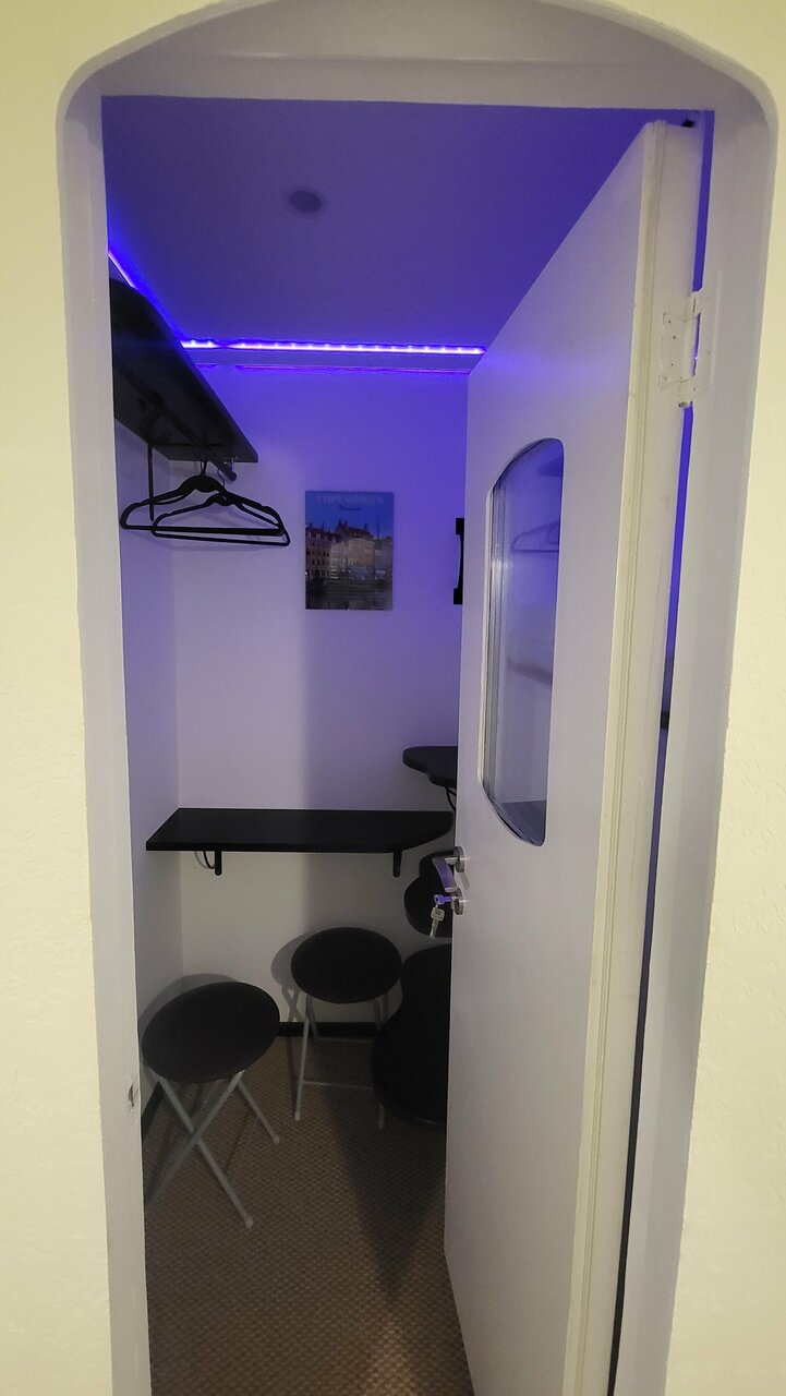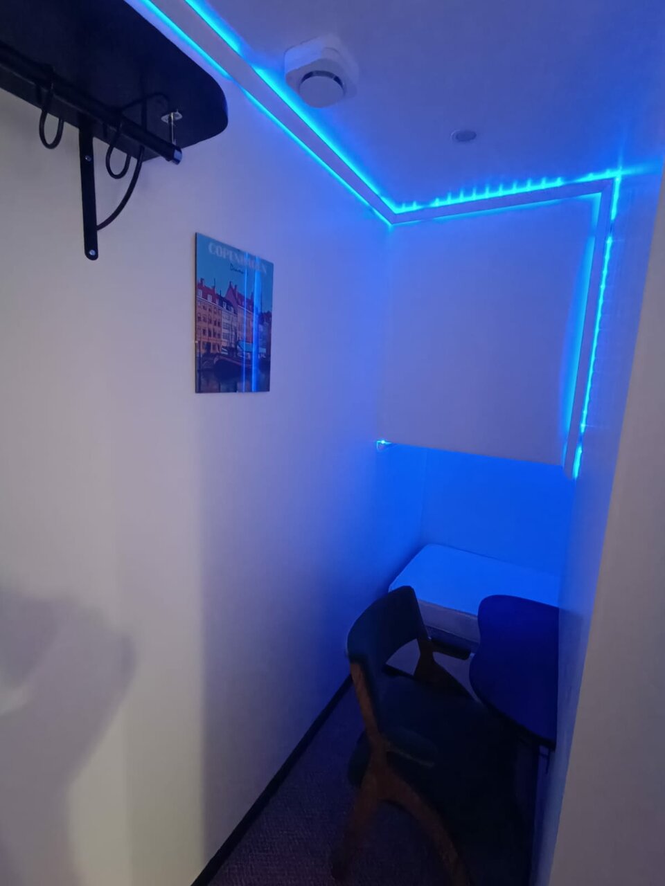 Офигенный современный хостел ,в английском стиле ,с отдельными индивидуаными комнатками,вентиляция ,отдельный пульт с подсветкой потолка в разных цветах ,необычно и незабываемо Круто!!!