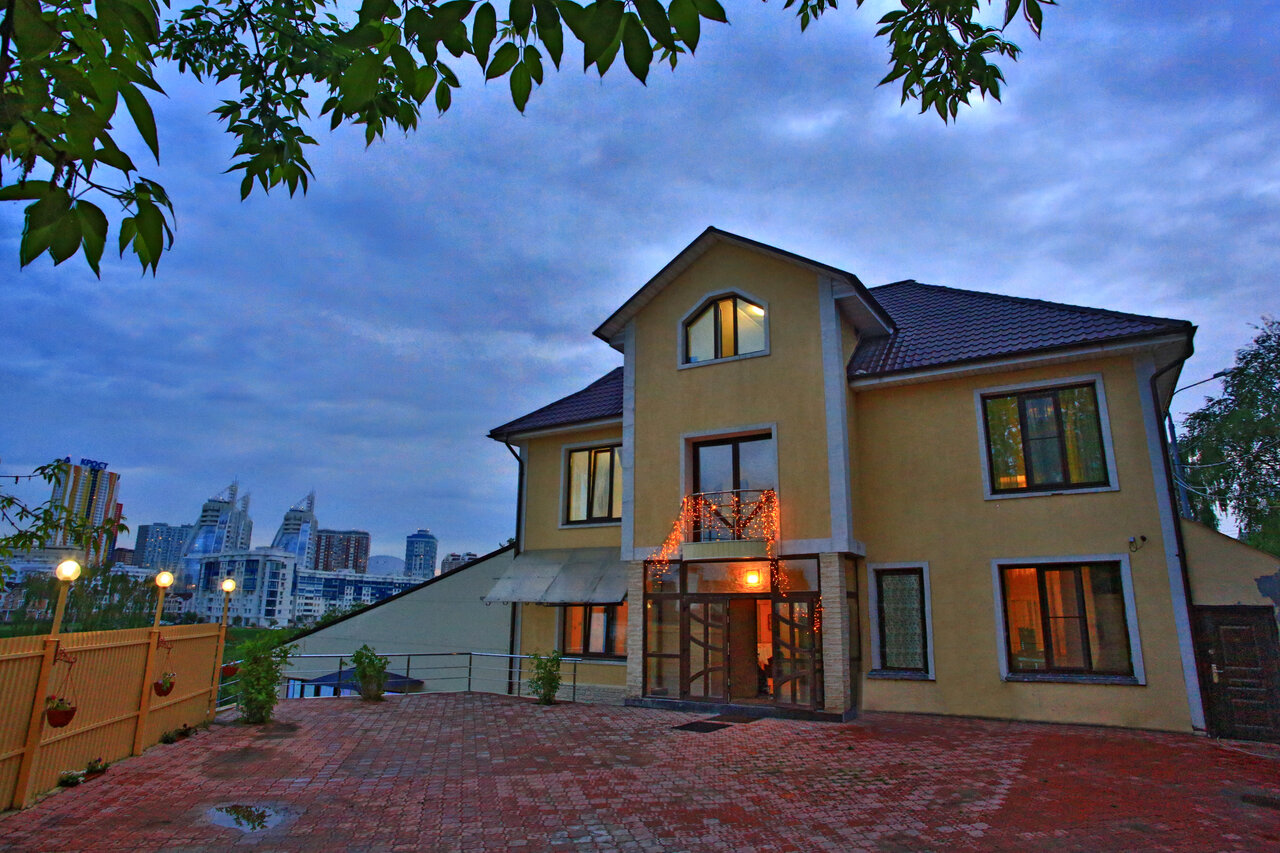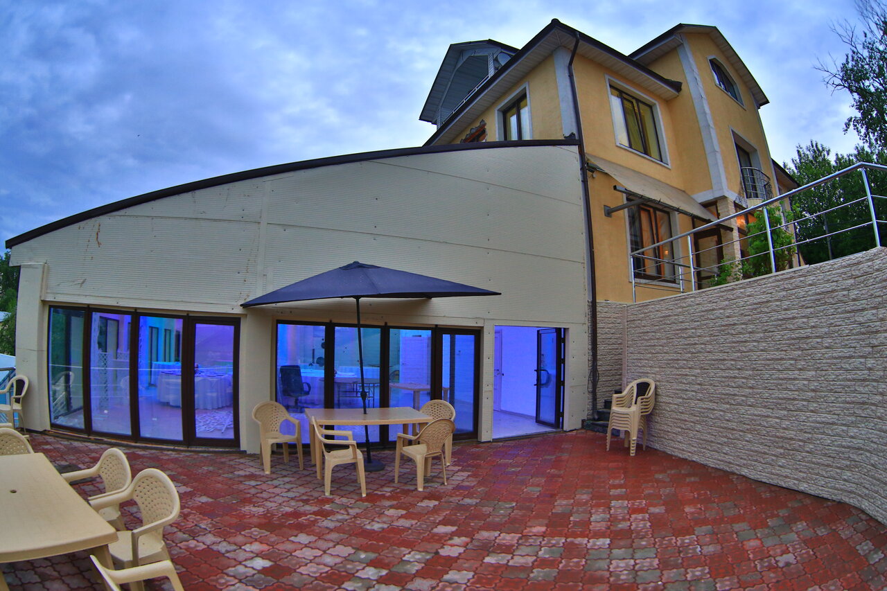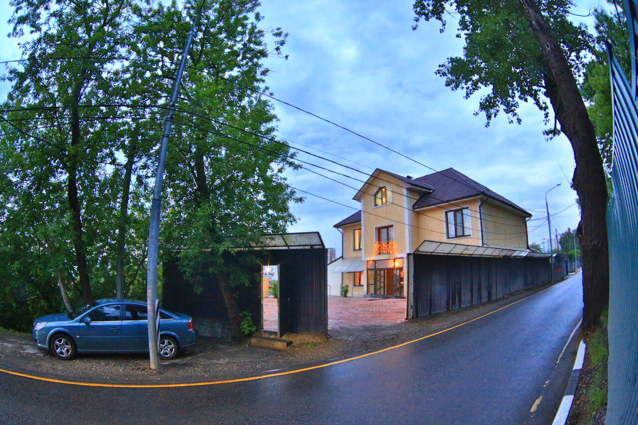 Гостиница находится довольно далеко от метро. Однако тут есть прекрасный банкетный зал, а из гостинного дворика открывается прекрасный вид, неподалёку течёт река. Распологается в тихом частном секторе. Так же хочется отметить, что везде сделан отличный ремонт, всё очень чисто и красиво.