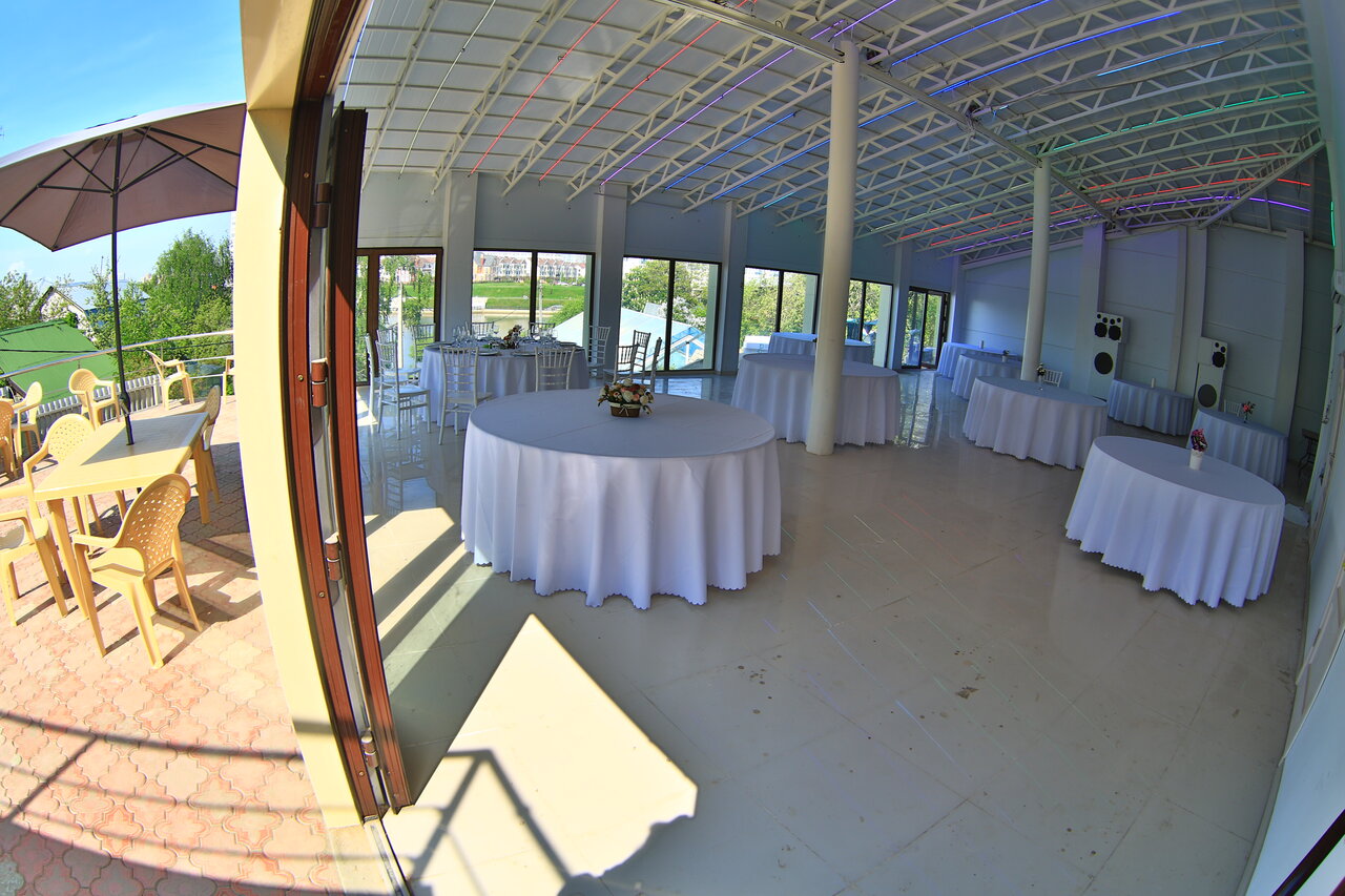 Все так, как на фото. В помещениях очень чисто и есть все необходимое. Банкетный зал — чистый лист, подходит для любого декорирования. Разрешили пользоваться конструкциями для фото зоны. Хороший вид на Красногорск и реку. Есть сауна и бассейн в отдельной постройке. Очень ненавязчивый персонал.