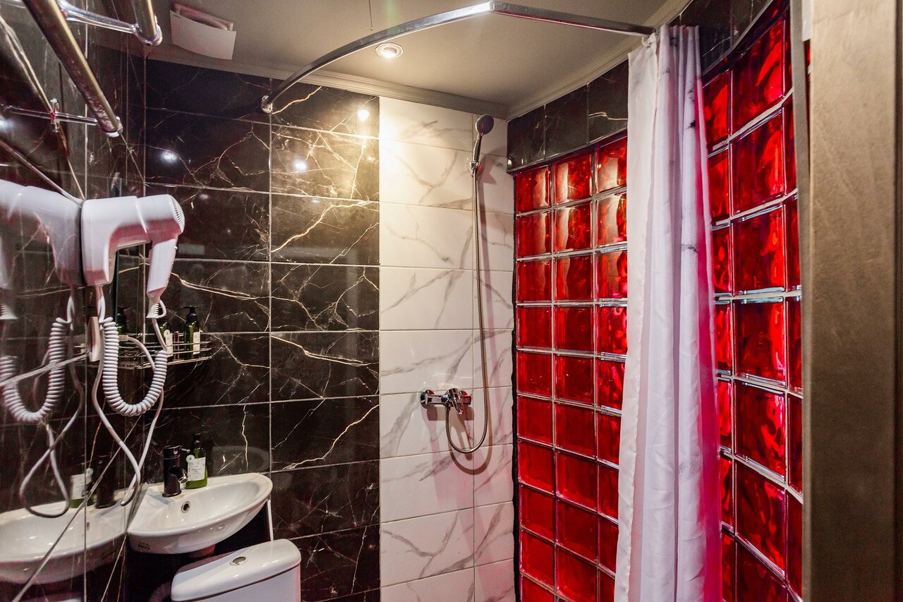 Ужасный отель, ужасный сервис. Забронировали с 20 по 23 июня 2023. В итоге, 22-ого выехали и переехали в другой НОРМАЛЬНЫЙ отель. В номере наполовину пола постелен холодный кафель. Дверь в ванную мало того, что стеклянная, так она с ужасным звуком закрывается — задевает за кафельный пол. Очень прикольно, особенно ночью, идти в туалет, всех будить этим скрипом. Дверь предусмотрена вторая для шумоизоляции со сломанной ручкой. В душевой нет даже душевой стойки — лейка просто лежит на смесителе). Вода вместо горячей холодная, иногда теплая, реже — горячая. Шкаф для одежды просто произведение искусства — верхнее отделение для висячей одежды по высоте примерно сантиметров 50, ничего не повесить. Дополнительное место (были с сыном 14 лет) просто ‘деревянное’ — спать невозможно, после двух ночей у него разболелась спина, еще одна причина переехать. Розетки у прикроватных полочек сделаны ПОД ними, супер неудобно!