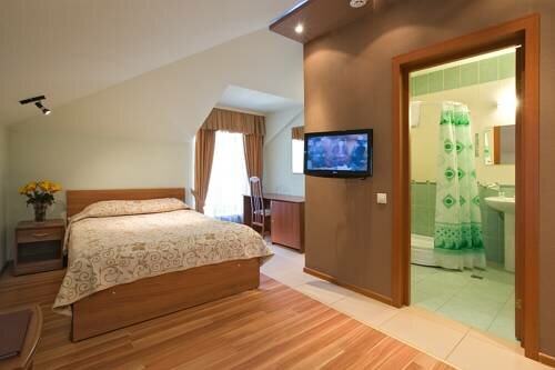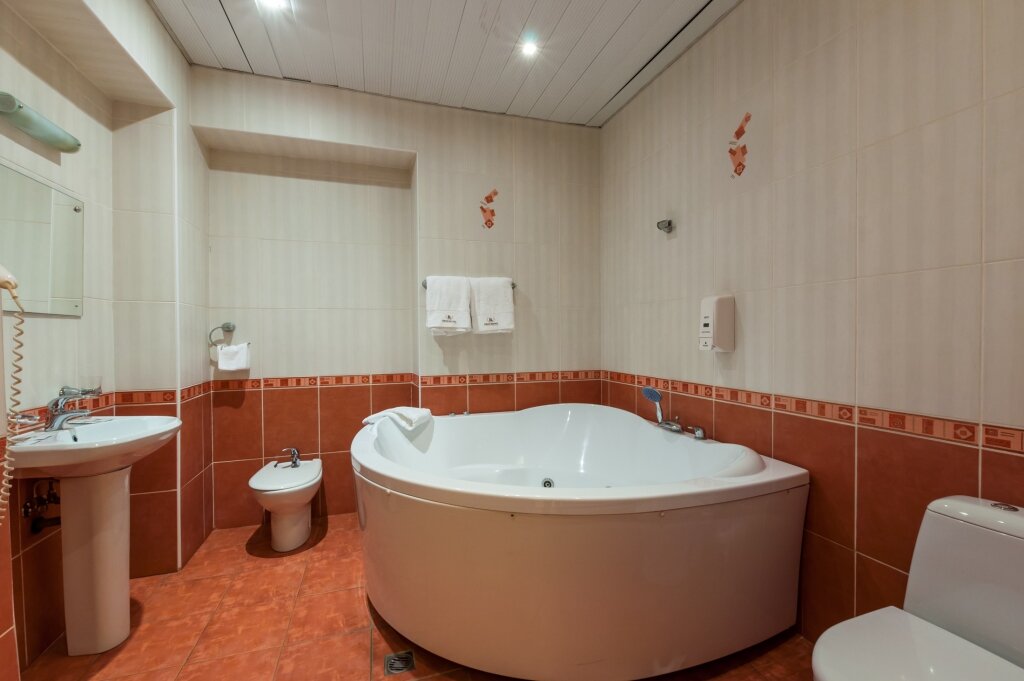 Чистый номер, было джакузи, но им не пользовались — выглядит ‘уставшим’ . Выбрали тариф с завтраком, на выбор три варианта — завтраки сытные, вкусные. Есть возможность пообедать/поужинать до 24:00 в кафе при отеле. Зубные наборы по стоимости 100 р, шампунь и гель в номере бесплатно. Общее впечатление хорошее от гостиницы, на пару дней остановиться можно. Но не мне хватило сервиса. Сотрудники дружелюбные, но даже не спросят ‘как проходит ваше проживание ‘ или не поздороваются, когда проходишь мимо. По выезду тоже не попросили обратную связь, видимо, всё равно. А ведь это отличная возможность узнать, что можно изменить /улучшить на вашем объекте.