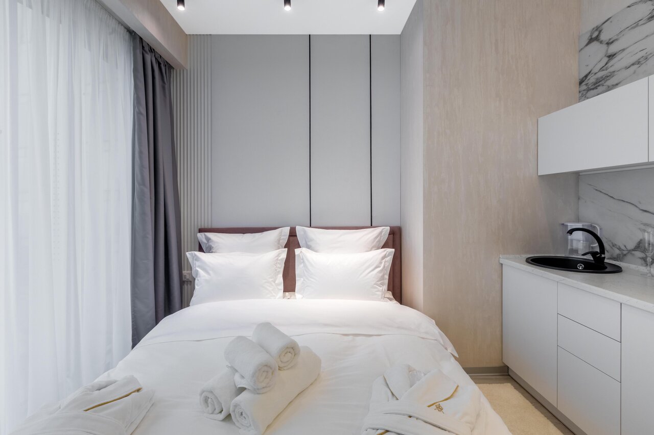 Апартаменты понравились, претензий к сервису нет, практически идеально чисто. Есть все необходимое для кратковременного проживания. Оператор все время на телефоне, отвечает на любой вопрос. Из минусов могу отметить отсутствие собственного парковочного места и довольно долгий проход через ресепшен. А целом остался доволен, рекомендую, вернусь еще раз
