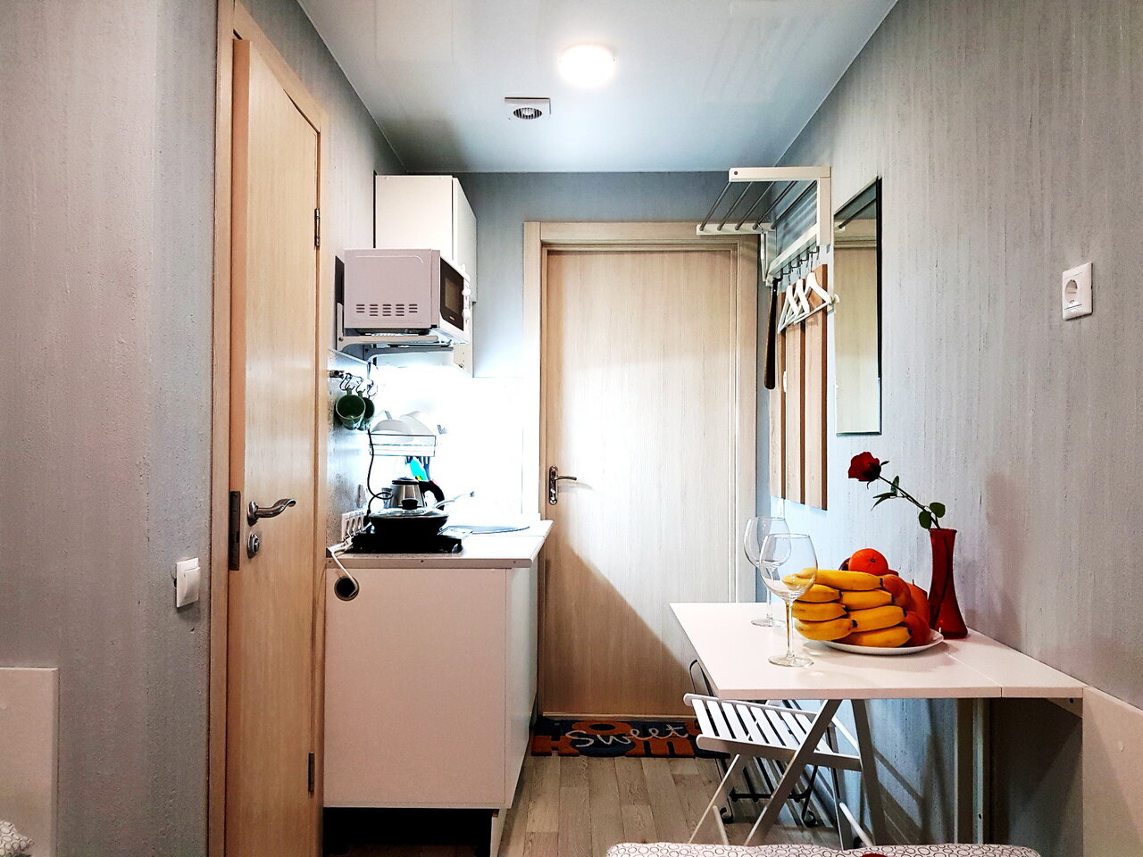 Чистая уютная маленькая сдудия есть все для короткой остановки, приветливая гостаприиная хозяйка. Возможность выехать самостоятельно при необходимости и заехать пораньше