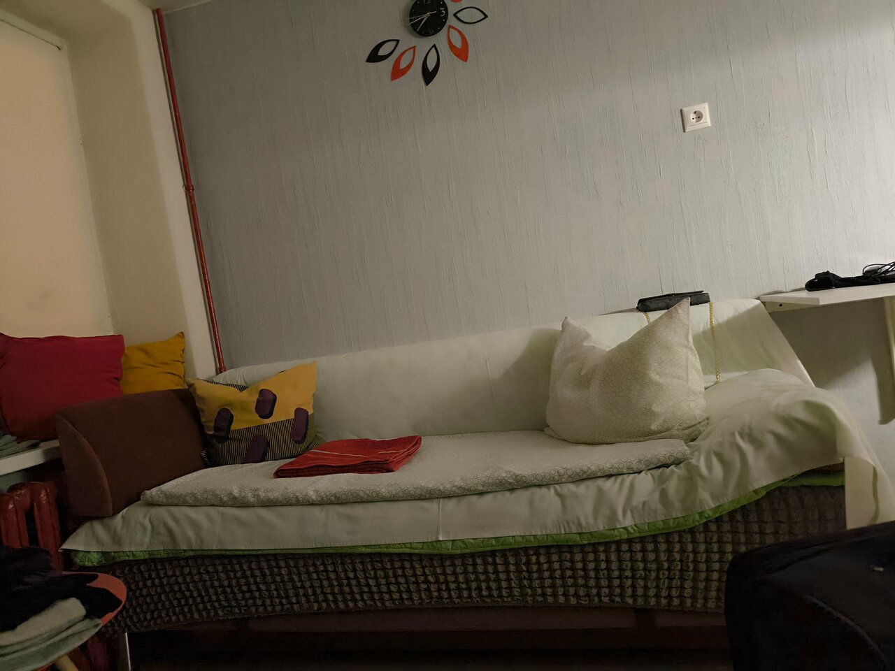 В кварзаехали проник бесконтактно ночью. Очень уютно и чисто. Чувствуется, что хозяйка относятся к делу с любовью — как они оформили окно и подоконник, красивые шторки с узором, подстилка, подушки! За свои деньги просто супер. Спасибо за такое пространство!