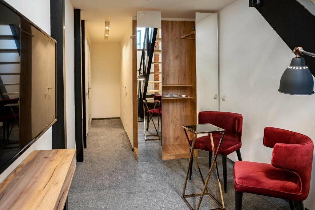 Плюс в отеле в том ,что он находится в самом центре ,Но……при заселении в люкс !!!обнаруживаешь что воды горячей нет !!!!и при этом с боллера вода просто не доходит до номера (как хочешь ,так и мойся).Администратор при этом решить проблему никак не мог!!!Ночью спать не возможно вообще ,тк окно выходит на пешеходную зону и музыканты с матерными песнями поют в микрофон до 4 утра каждую ночь !!!!Слышимость колоссальная !!!!Деньги потраченные за номер очень жалко !!!В таких люксах я ещё не была нигде !!!Больше туда не приедем это 1000%