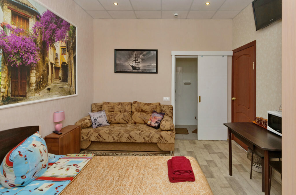 Удобства: ✔ Бесплатный Wi-Fi и парковка ✔ Кухонный уголок, чайник, микроволновка ✔ Фен, халат, тапочки ✔ Трансфер до аэропорта ✔ Стиральная машина, прачечная