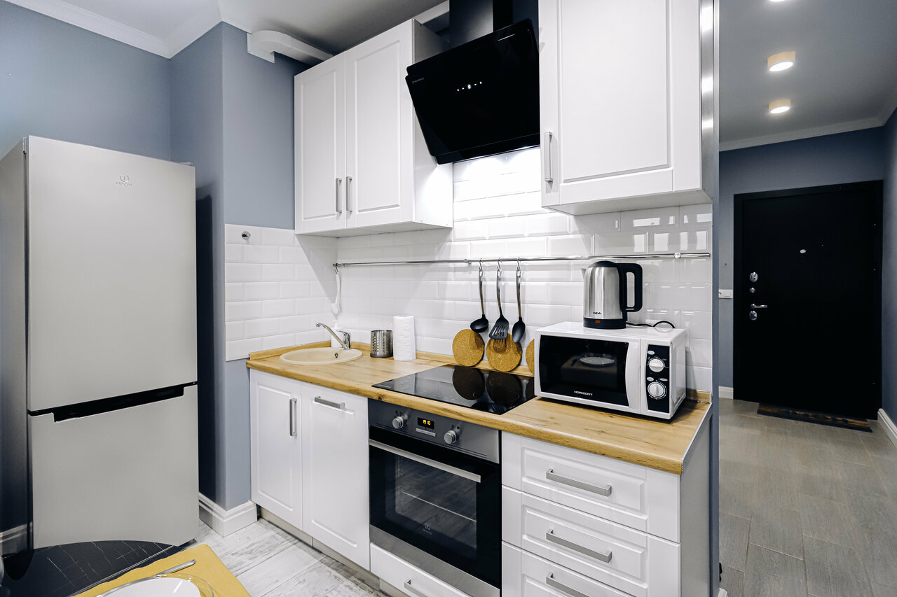 - Полная бытовая оснащённость (фильтр для воды, кофе, посуда, техника).