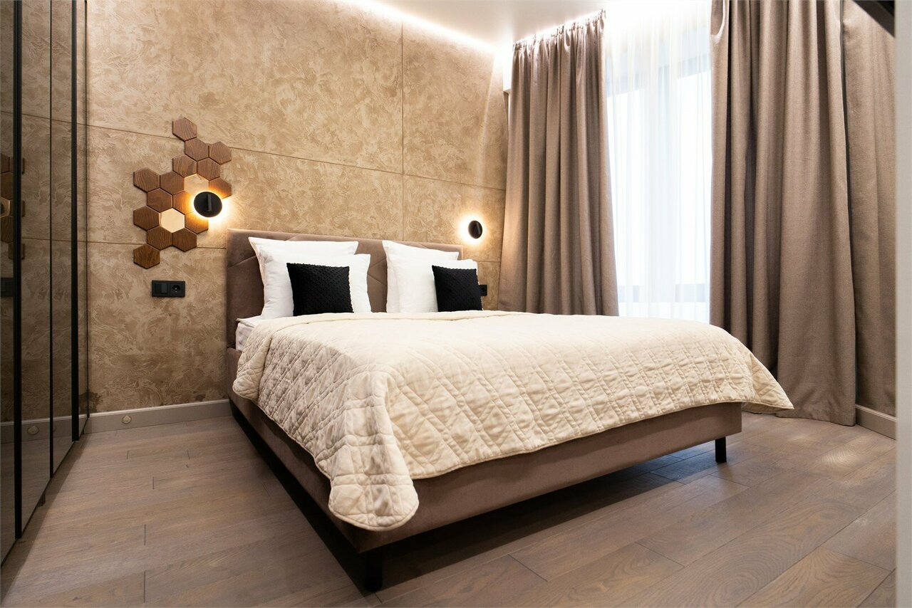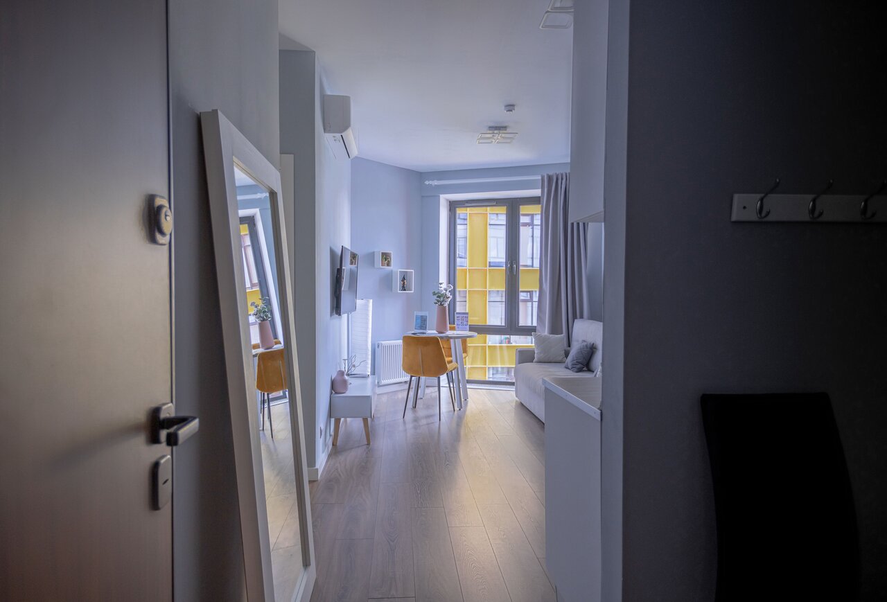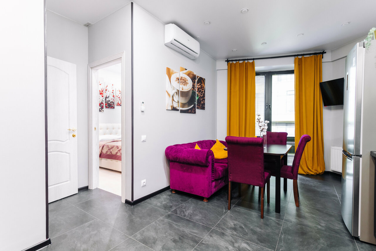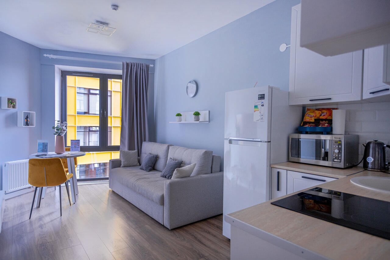 Жили в этих апартаментах почти месяц, очень уютно и комфортно. Вдвоем дить прям вооьще супер будет Удобно было добираться до центра, сама инфраструктура ЖК классная. Рекомендую к проживанию!