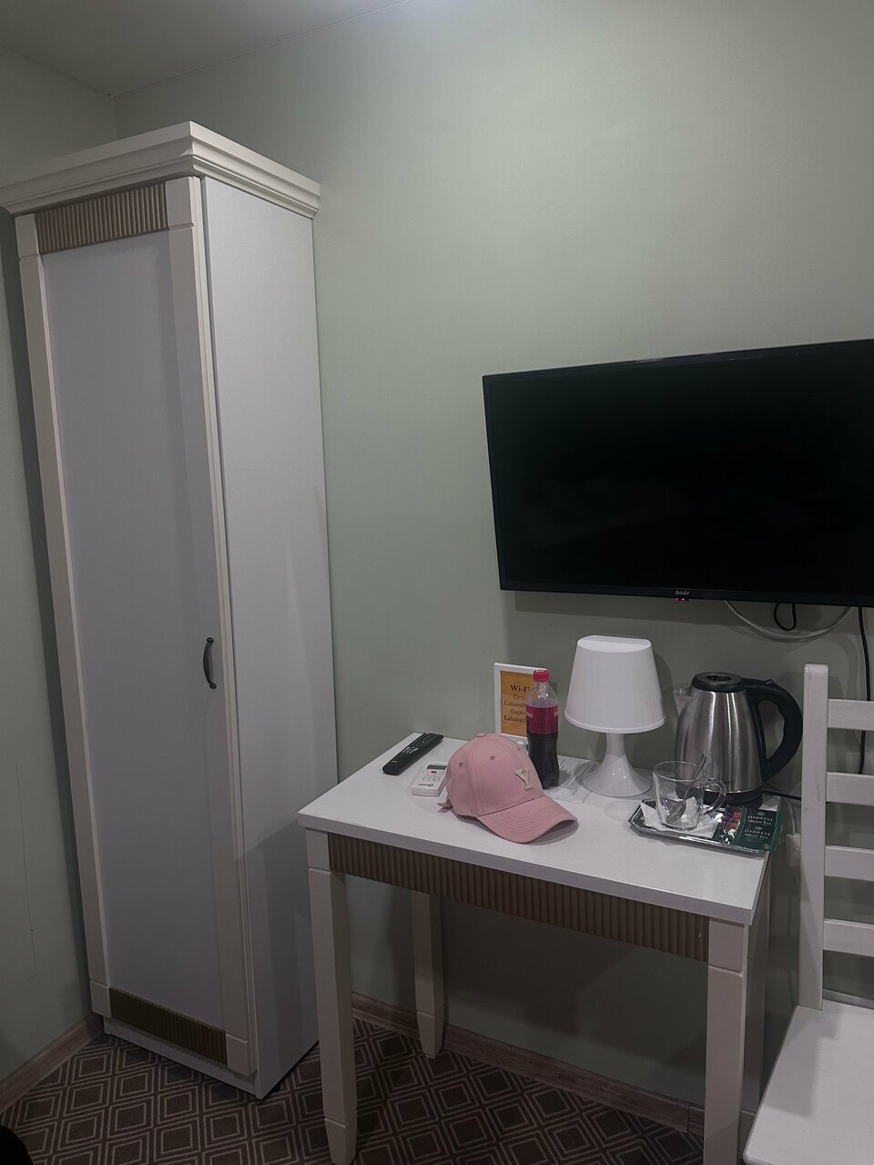Приехали в Москву на отдых. Срочно нужно было найти гостиницу, где ночевать. Нас встретила администратор Наталья. Очень доброжелательная, веселая, приветливая. Сам номер небольшой, но было чисто, убрано. Нам предоставили чайник, это очень удобно. Также были пакетики чая. В коридоре есть кулер. Мы приехали в самую жару. Было душно. Кондиционер не очень справлялся, но администратор нам помог, выдал вентилятор и сразу стало легче. Спали в тишине, никто не мешал. Понравилась еще достаточно демократичная цена. Нам здесь понравилось. Спасибо и привет из Томска!