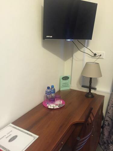 Очень удачное расположение. В плане доехать и уехать! Номер чистый. В номере без излишеств. Все есть( стандарт) Фото соответсвует действительности. Чайник, м.п. , и прочие услуги — все бесплатно. Очень отзывчивый персонал. У отеля 2*. Все соответствует заявленому. Рекомендую