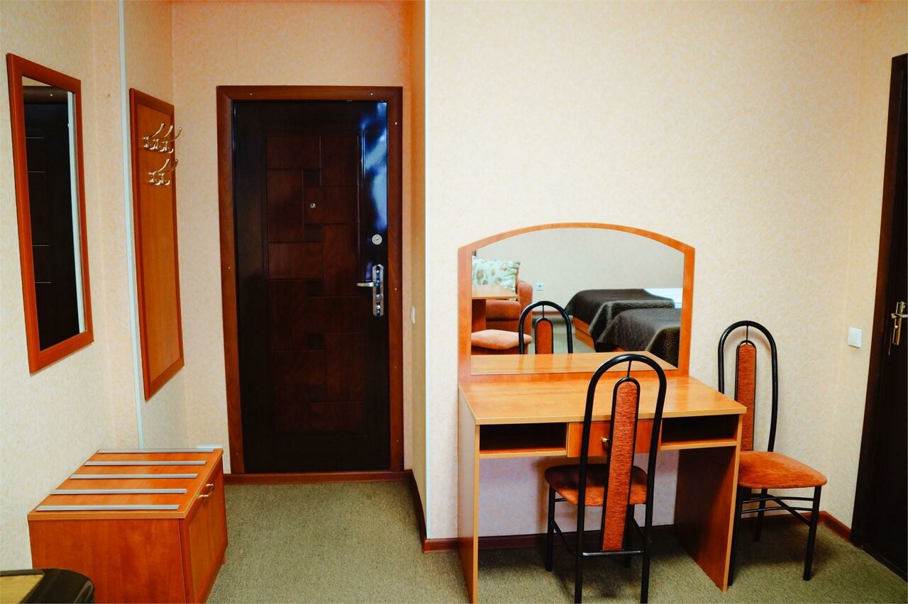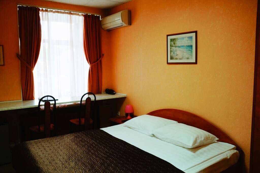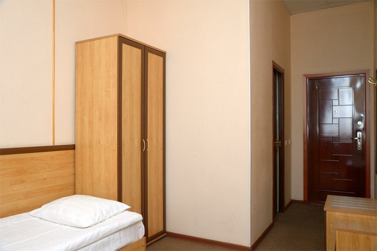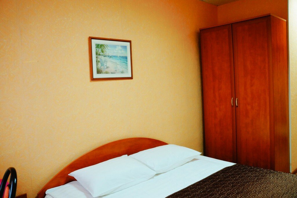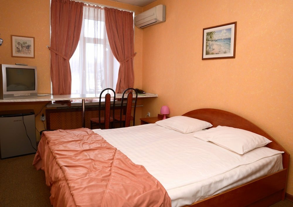 Хорошая недорогая гостиница. Удачное расположение. Номер чистый, матрас и подушки удобные, сантехника функционирует. Холодильник, телевизор, фен, шкаф с вешалками. В коридоре кулер с хорошей водой (без привкусов и запахов). На первом этаже кафе, где вкусно кормят. Каши получаются особенно вкусными. Руководство идет на встречу в дополнительных просьбах.