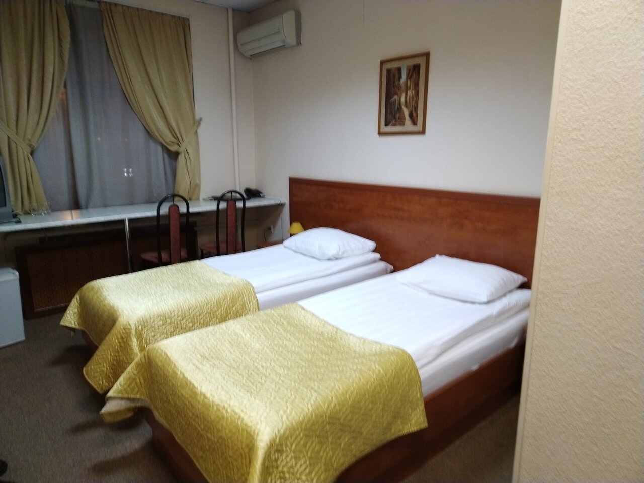 Приезжали на пару дней, что сказать..Думаю, стоит начать с номера.Брали двухместный номер,зайдя внутрь чуть не упали от стойкого запаха канализации в самом номере.Ковры грязные,все в пятнах.В номере не было никаких средств личной гигиены , помимо 4х бутыльков с шампунем, не предоставляется одноразовые тапки,халаты и тд, как это обычно принято во ВСЕХ гостиницах.Окна загрязнены, к подоконнику не прикоснуться,ночью от окна сквозило так, будто бы включен кондиционер, в самом номере невероятно холодно, так же как и в душевой комнате.За два дня ни разу не было уборки в номере , не менялись полотенца.Под окнами данного заведения идет стройка.Так что если вы хотите с комфортом отдохнуть в Москве , то обходите данное место стороной)