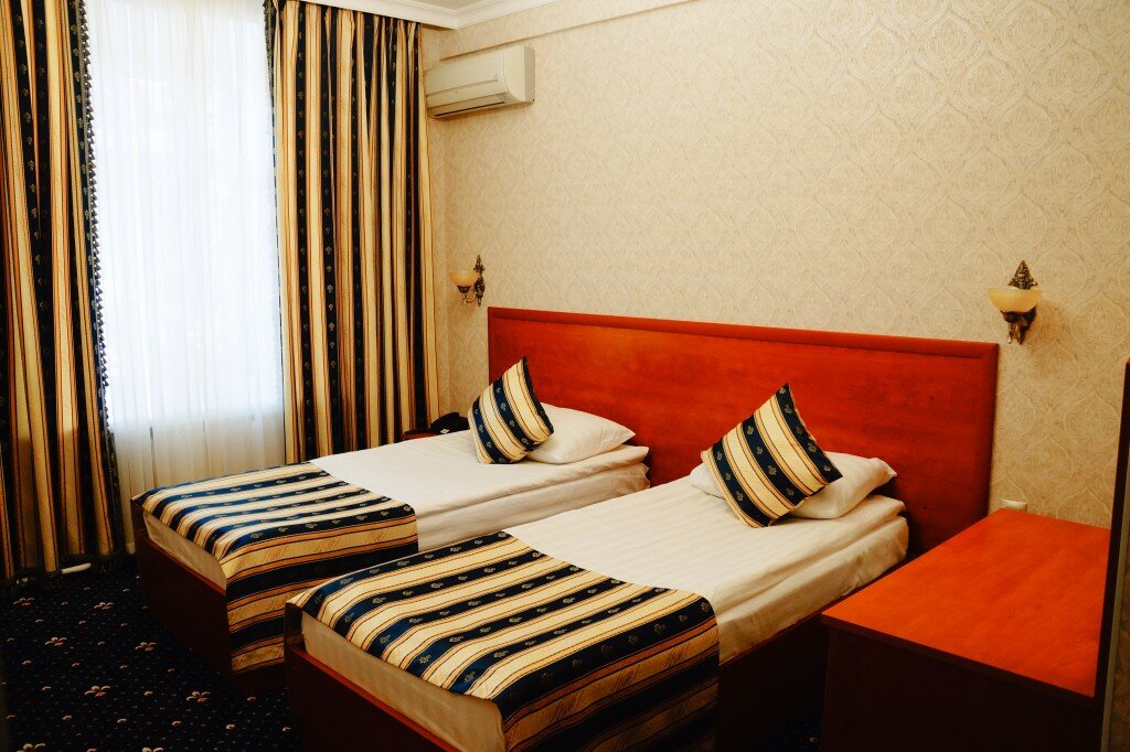 Гостиница оснащена современными удобствами: кондиционер, Wi-Fi, телевизор, фен, холодильник, звукоизоляция. Для гостей доступны бизнес-центр, конференц-зал, тренажёрный зал, кафе, ресторан и платная парковка.