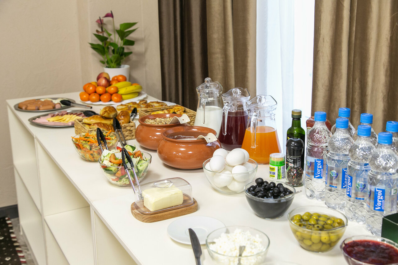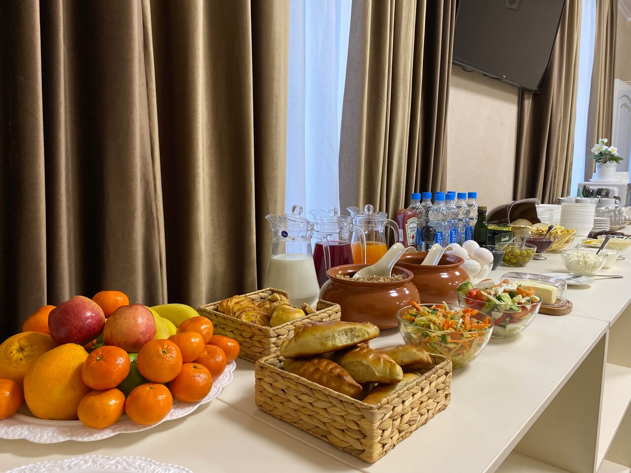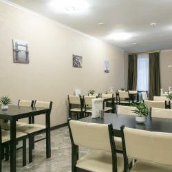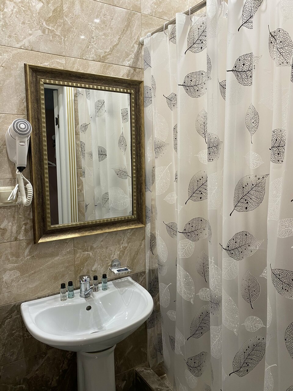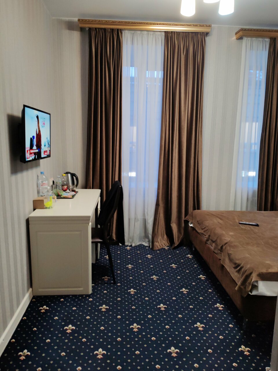 Хороший отель, рядом есть магазины (пятерочка, магнит, вкус вилл, табачный). Но есть совет хозяевам отеля: занавески в ванной должны быть ниже, вода льется, потом на полу потоп. Надо разобраться с отоплением, обогреватель — не выход. Купить подушки получше. Положить набор пластиковых столовых приборов, потому что чай есть, сахар есть, а мешать нечем). К чистоте и ремонту вопросов нет, все чисто и аккуратно. Вкусные завтраки, микроволновка для подогрева еды есть. Есть комплексные обеды и ужины (600 руб). Можно погладить одежду, утюг с доской есть на этаже. Персонал приветливый. В целом, все нормально.