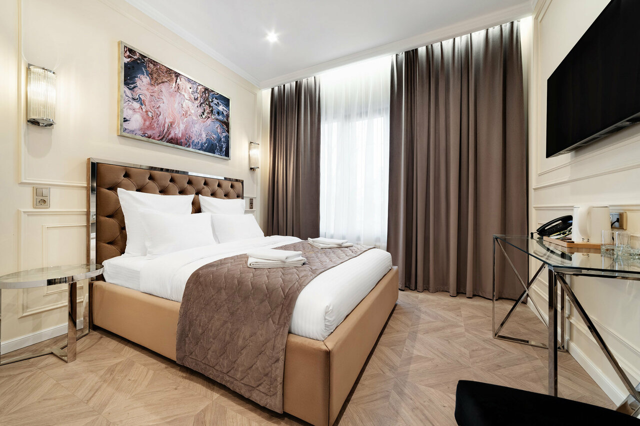 - Бесплатный чай и кофе в номере.; Потрясающий ремонт.; Приемлемая цена.; Основательный подход владельца.; Удобная кровать с белоснельным бельем.