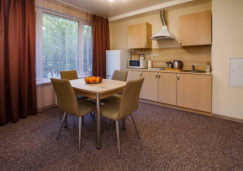 - Дополнительные удобства (фен, посуда, стиральная машина в некоторых номерах).