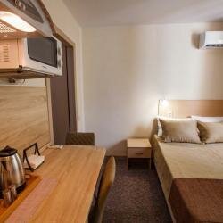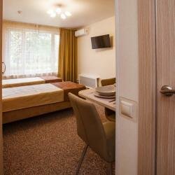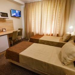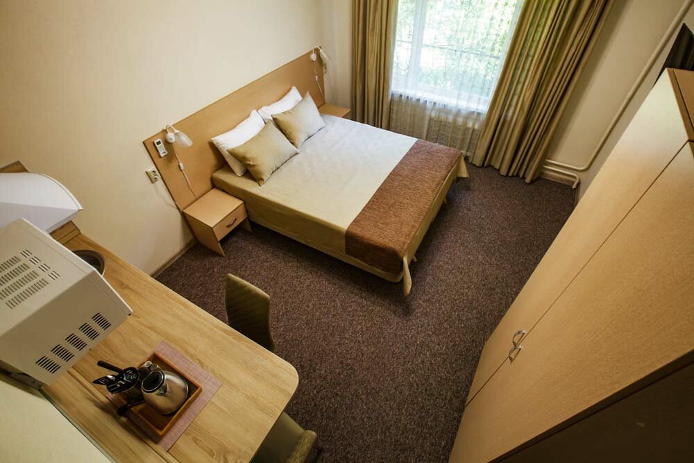 Одноместный номер для размещения 1 человека. В номере Телевизор, WiFi, вся техника. Постельное бельё и полотенца класса Комфорт, косметика серии Hotel. Безопасность: в помещениях общего назначения установлены: система охраны, видеонаблюдения, пожарна