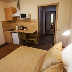 Комфортабельный номер в апартаментах для размещения 1-3х человек, с выделенной зоной мини-кухни, оснащенный бытовой техникой, кабельным ТВ, Wi-Fi. Предоставляем свежие полотенца и постельное белье класса комфорт, одноразовые тапочки, косметика сер...