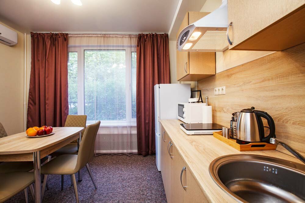 - Наличие кухонного уголка и необходимой техники (чайник, микроволновка, плитка).