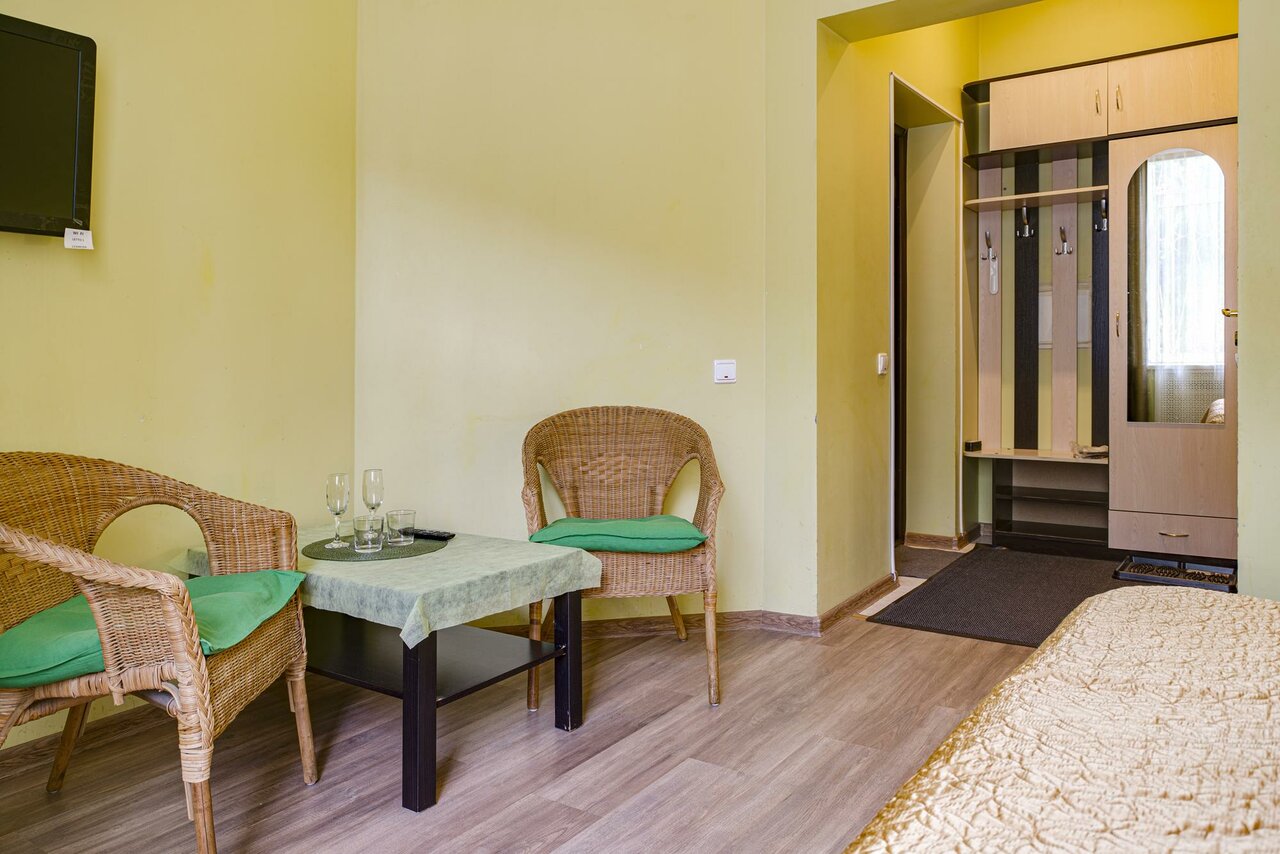 Плюс — то что недалеко парк, остановка. Минус — гладильные принадлежности и хранение багажа платные. Заезд строго после 14. Телевизор ни один канал не поймал.