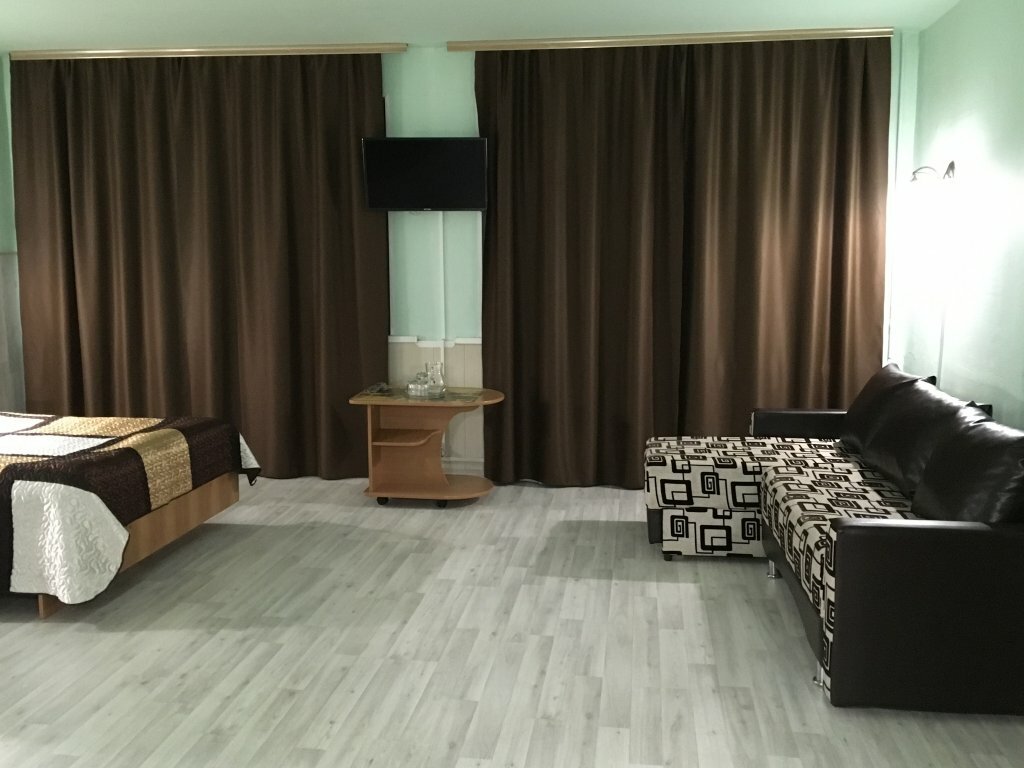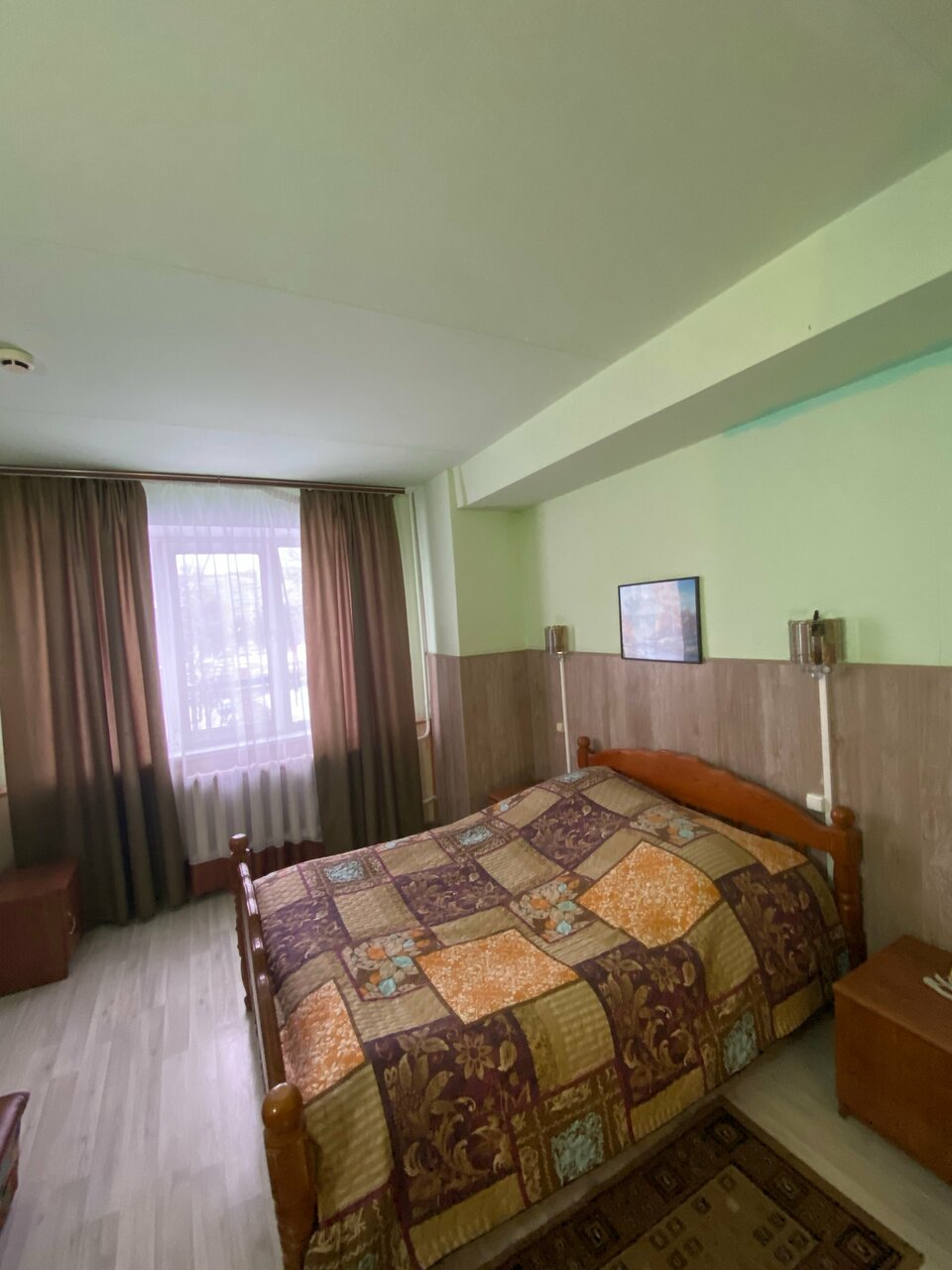 Гостиница эпохи советов, что не так плохо, если бы поддерживалась в хорошем состоянии: уставшая от времени мебель, прожженое постелтное, грязная душевая комната, в некоторых комнатах стойкий запах табака и в целом ремонт здания ужасен. При этом за сутки берут 3500. Плюс в том что есть завтрак, состоящий из яичницы с сосиской, чая и блинчика, но данное меню не меняется вовсе изо дня в день