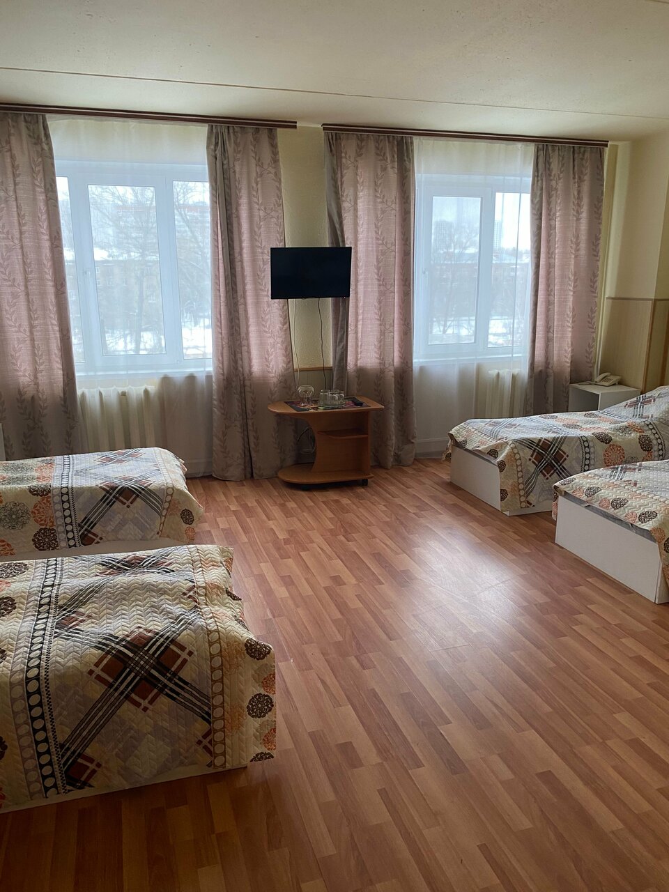 Гостиница совкового типа.Вся мебель той же эпохи.Ванная комната оставляет желать лучшего.Хотя бы полотенца новые.Постельное белье самое простое а-ля совок,но чистое.Одна сторона гостиницы выходит на завод видим-биль-данн,соответсвенно есть гул и шум от грузовиков. В кафе проводятся праздничные мероприятия и пятницу тем, кто живет на втором этаже будет все слышно.Но в 23:00 все выключают.Зимой на втором этаже прохладно.Номера почти все просторные, но есть прям очень маленькие, хотя цена одинаковая.Рекомендую сначала посмотреть номер. Еда довольно вкусная.Можно поесть комплексный обед и ужин (300 р),что даёт возможность неплохо сэкономить.Остальное меню тоже очень вкусное, но цена уже выше.