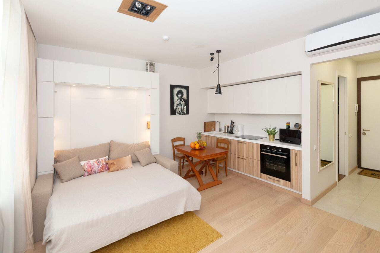 Регулярно здесь останавливаюсь. Отличный апартамент: всё чисто и ухожено, приятная обстановка и классная атмосфера. Вежливые хозяева — при первом заезде заселили, помогли разобраться с проходом на территорию ЖК. Единственный минус — из-за популярности иногда к ним бывает сложно попасть ‘день в день’. Лучше бронировать заранее.