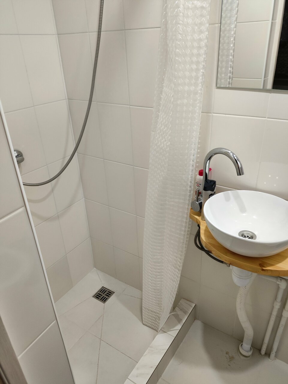 - Тесная душевая кабина.