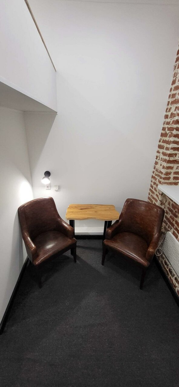 Уютный номер в дизайнерском стиле 'Лофт'. Площадь номера 22 м2Удобная двуспальная кровать с ортопедическим матрасом на 2 спальных места.Номер имеет собственную ванную комнату, набор полотенец, туалетные принадлежности. В номере есть все необходимо