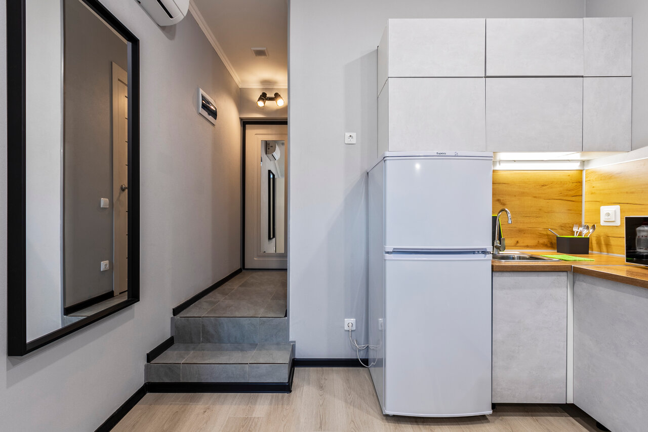 Предлагаем вам прекрасные двухуровневые апартаменты площадью 24 м², рассчитанные на 3 человека (1+1+1): две BoxSpring кровати (по умолчанию надёжно скреплены в одну двуспальную) и раскладная кровать. Забронируйте прямо сейчас!