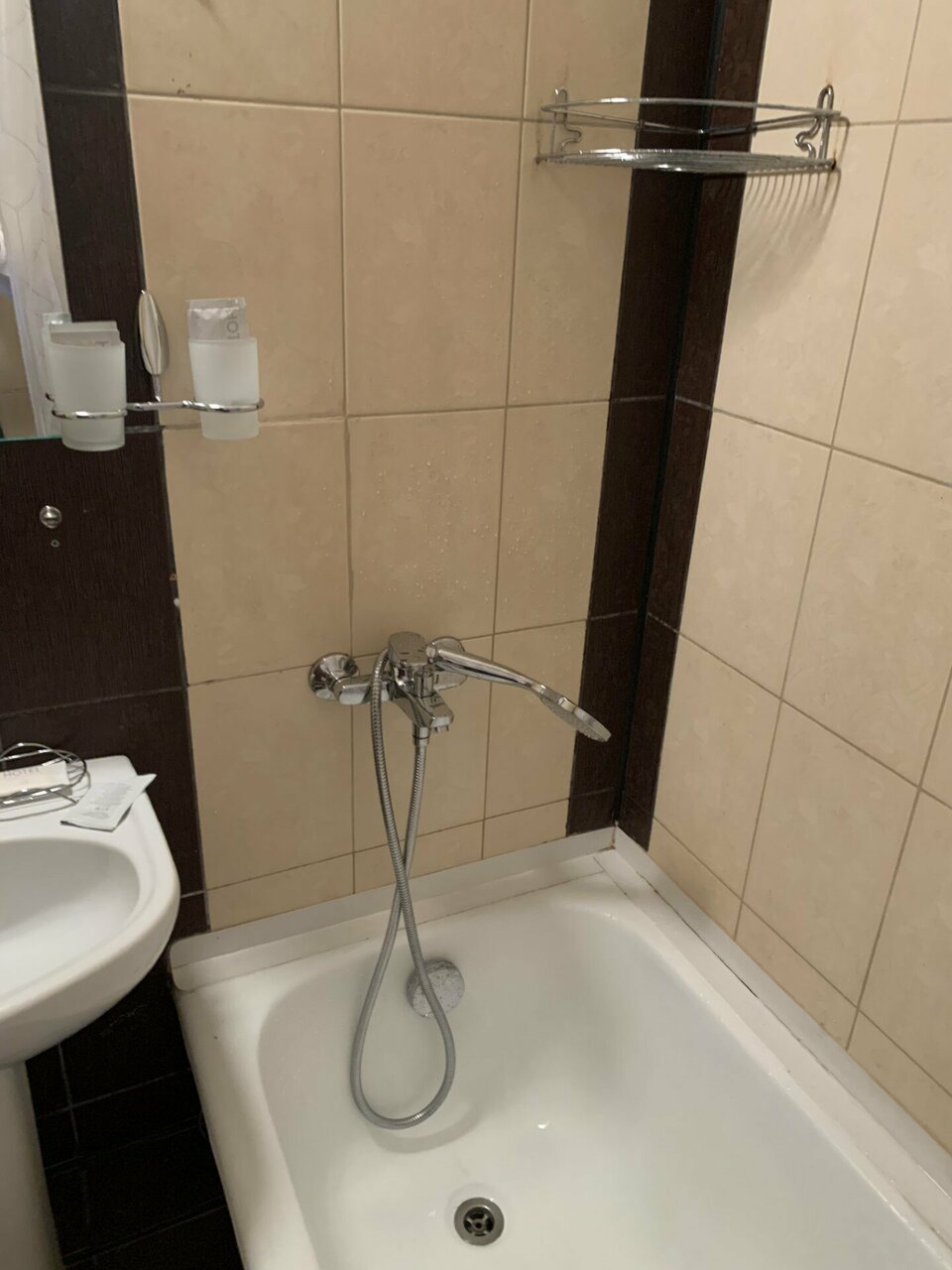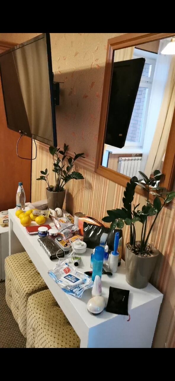 Довольно чистый номер, из плюсов цена. Расположение к метро. Кухня на которой можно сделать чай/кофе. Шампунь/гель/мыло в наличии. Полотенце. Из маленьких минусов. Номер слегка уставший, но повторюсь. Чистый. Отсутствие зубных щеток и пасты. Отсутствие тапочек.