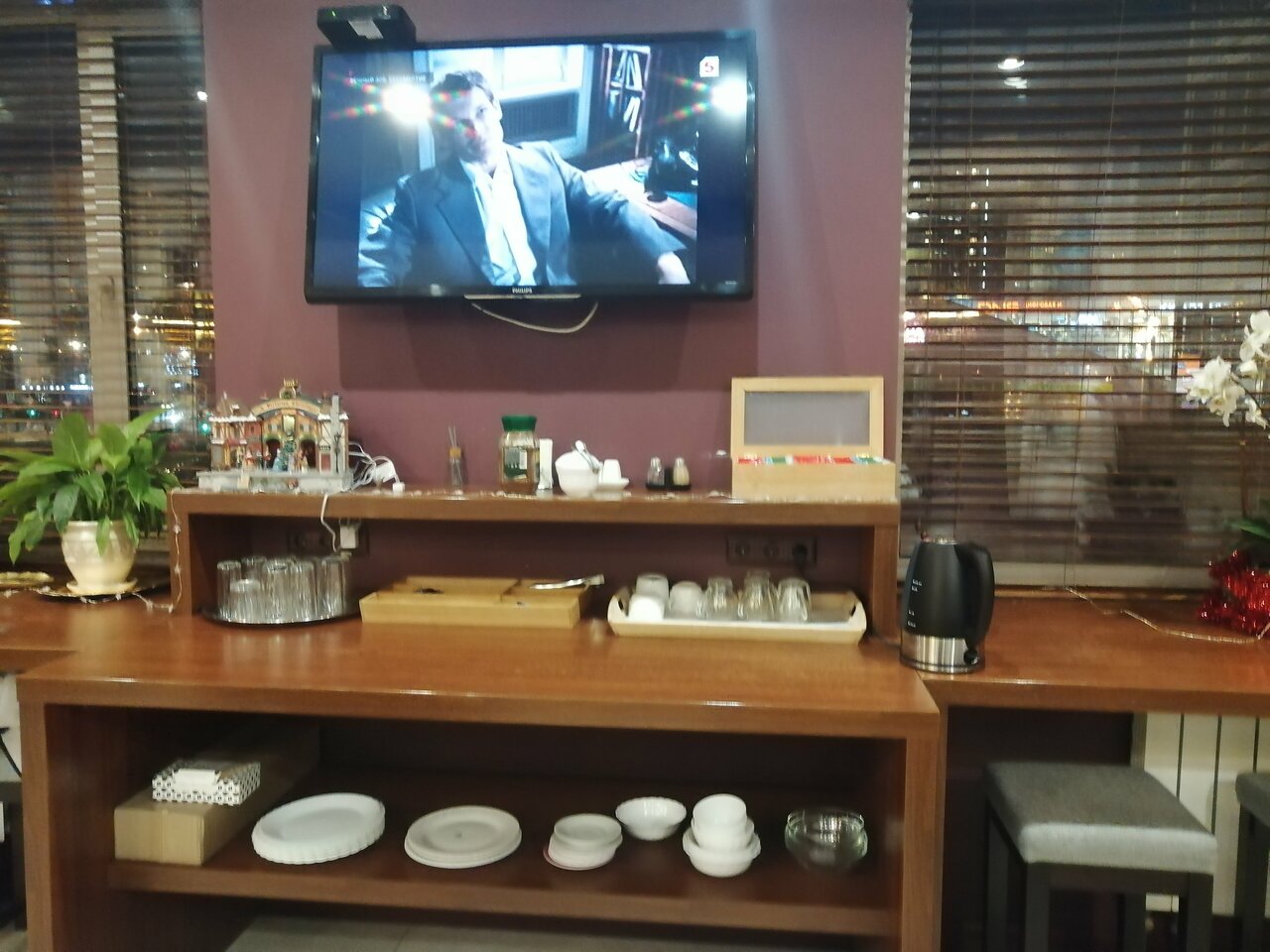 Телевизор в номерах не работал, только 1 полотенце на человека, вешалок нет, окна не открываются