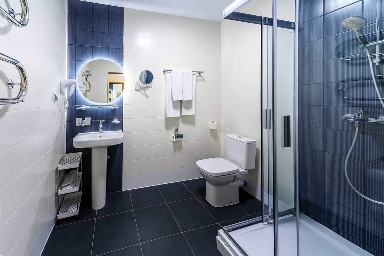 Удобства: фен, халаты, сейф, камера хранения, круглосуточная стойка регистрации. Питание (завтрак) и банкетные услуги — по запросу.
