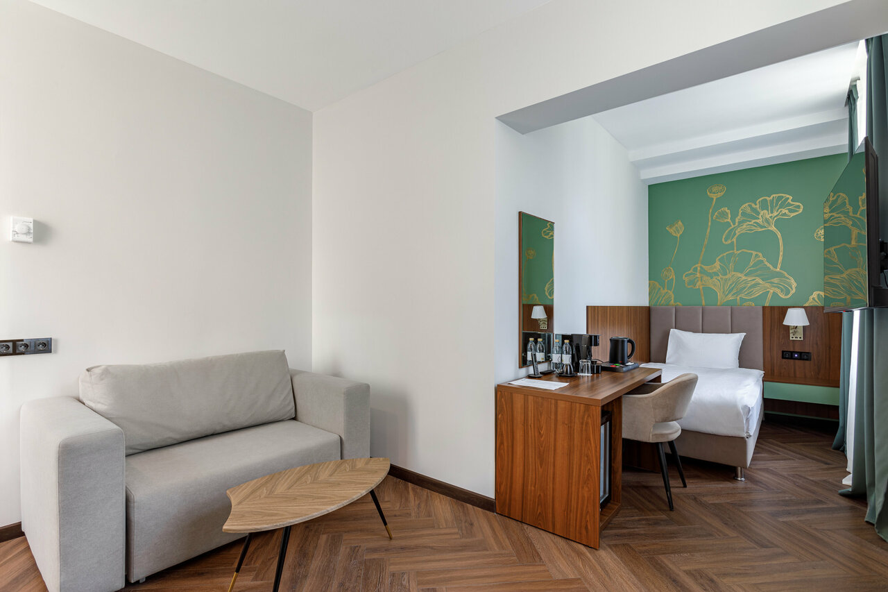 Площадь номера 29 кв мВ номере:мини-холодильникбутилированная водачайная станциязона отдыха и рабочий столполный набор банных и косметических принадлежностейфенкосметическое зеркало