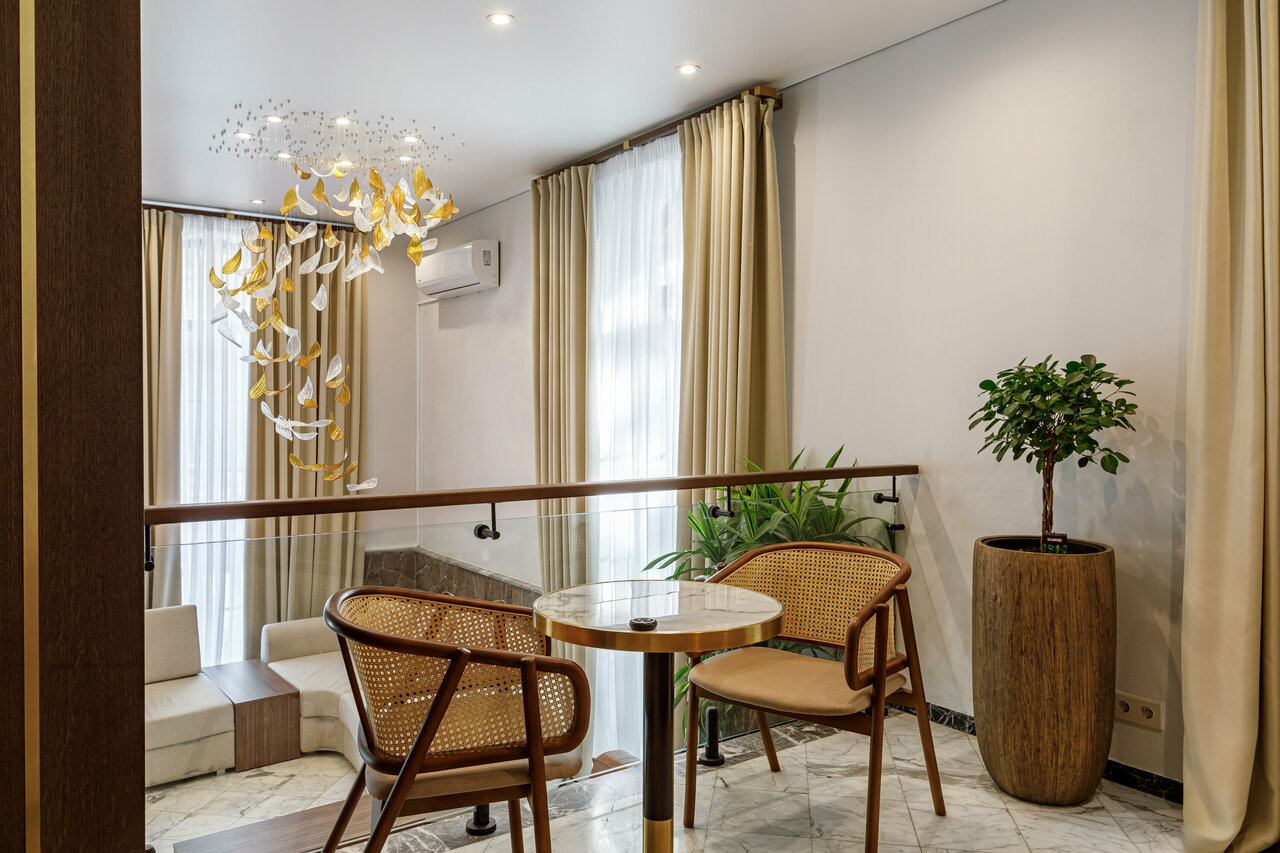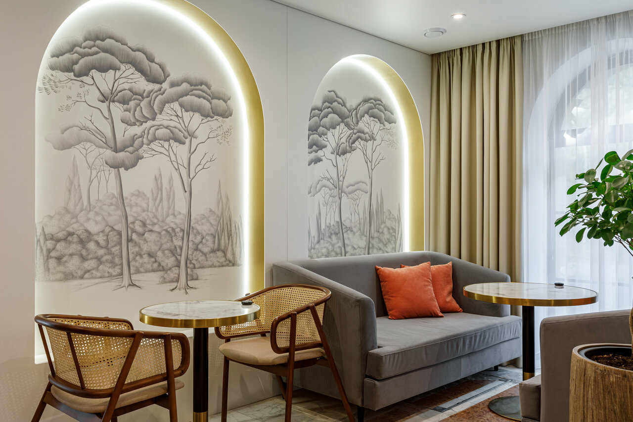 Я была в ресторане при отеле, в самом отеле не жила, видела только входную группу. Ресторан очень понравился! Была на ужине-лекции. Это новый проект, будет ещё несколько тематических ужинов. Мне очень понравилось!! Что касается гастрономической части было очень вкусно, все блюда понравились. Моя благодарность поварам! Девушки-официантки были точны, профессиональны, вежливы, видео было, что искренне стараются! Вся команда сработала прекрасно!