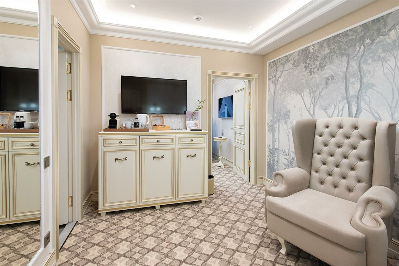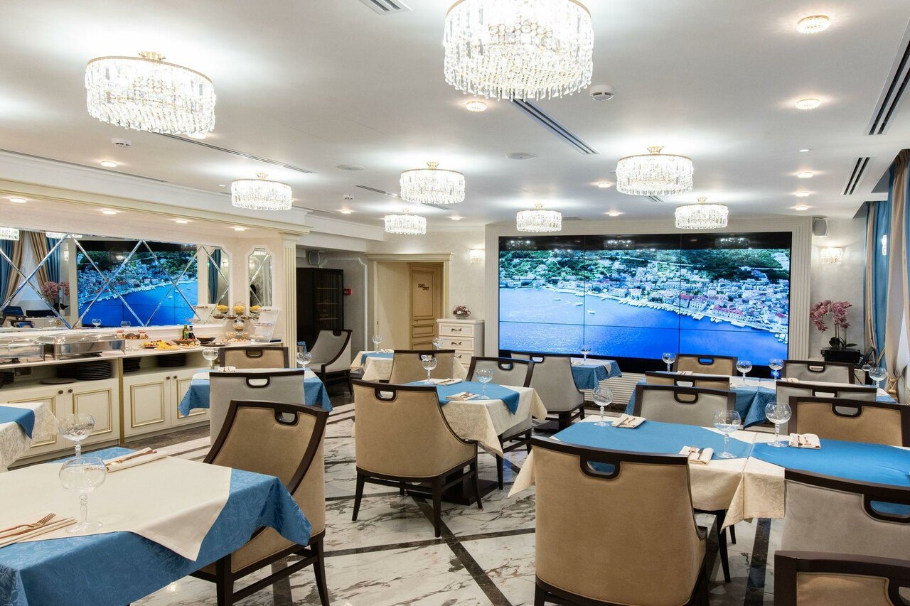 Удобства: — Питание: ресторан, 2 бара, завтрак (включая шампанское), детское меню, доставка еды. — Relax: SPA, сауна, баня, джакузи, массаж, тренажёрный зал. — Услуги: платный трансфер, консьерж-сервис, уборка, сейф, Wi-Fi, лифт. — Для бизнеса: банкетный зал, бизнес-номера.