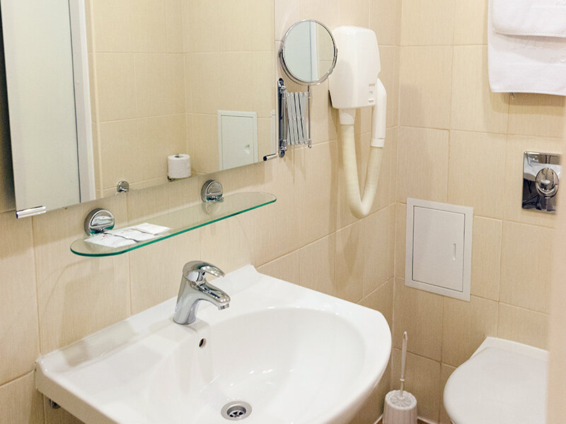 - Хорошо оборудованные номера (фен, средства для душа, тапочки, чай, кофе, чайник, вода).