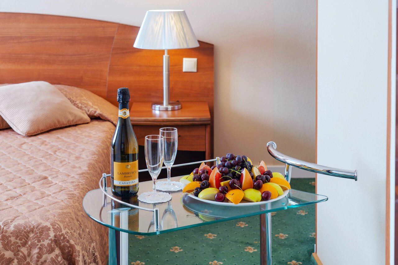 Услуги: — Питание: завтрак, полупансион, полный пансион или без питания. — Удобства: парковка, трансфер, камера хранения, конференц-зал, бар, кафе. — Для гостей: фен, халат, тапочки, телевизор, круглосуточная стойка регистрации. — Дополнительно: проживание с животными, детская кроватка (бесплатно), прокат авто, химчистка.