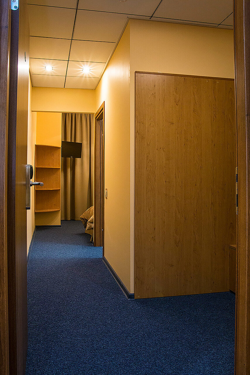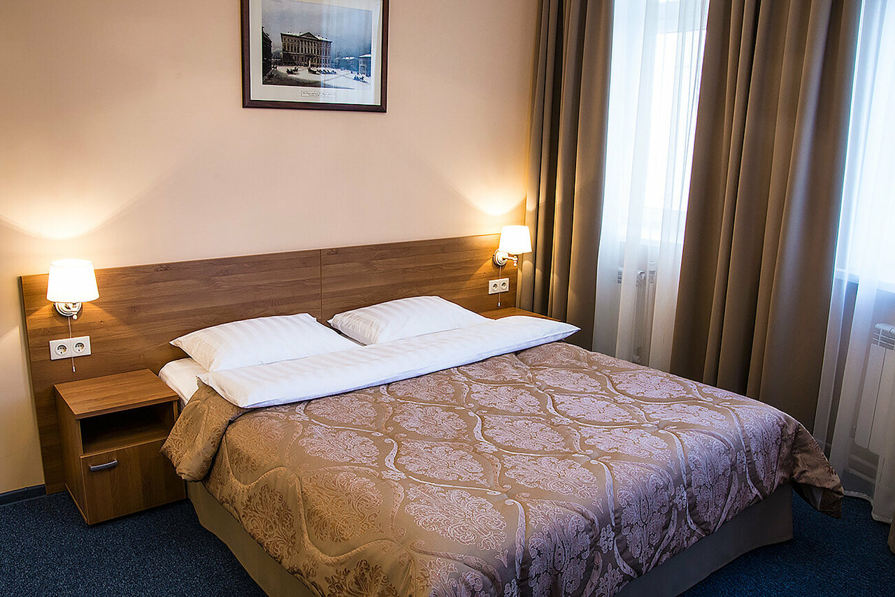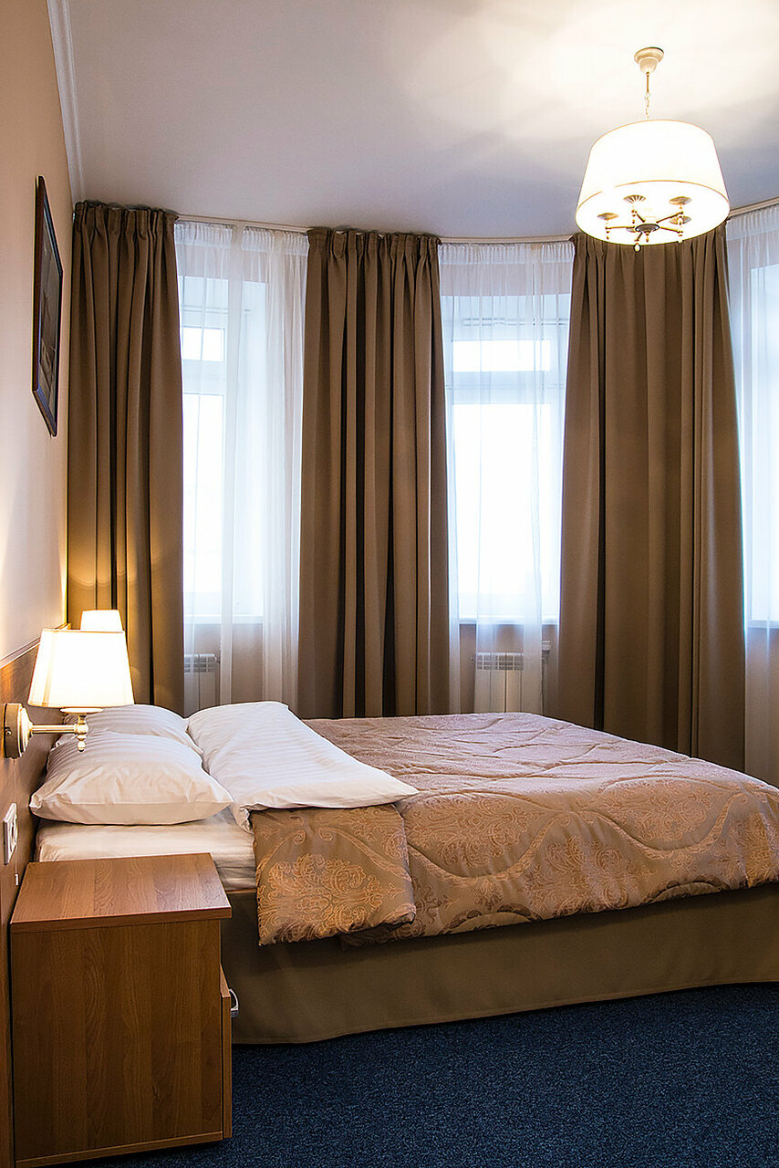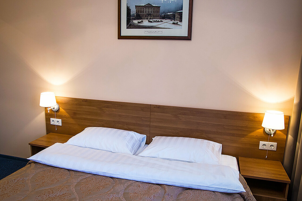 Номер площадью 18 кв.м. оформлен в классическом стиле, каждый номер уникален по своей планировке. Номера оборудованы современной мебелью, телевидением, мини-баром, кондиционером, сейфом, а также бесплатным скоростным интернетом.
