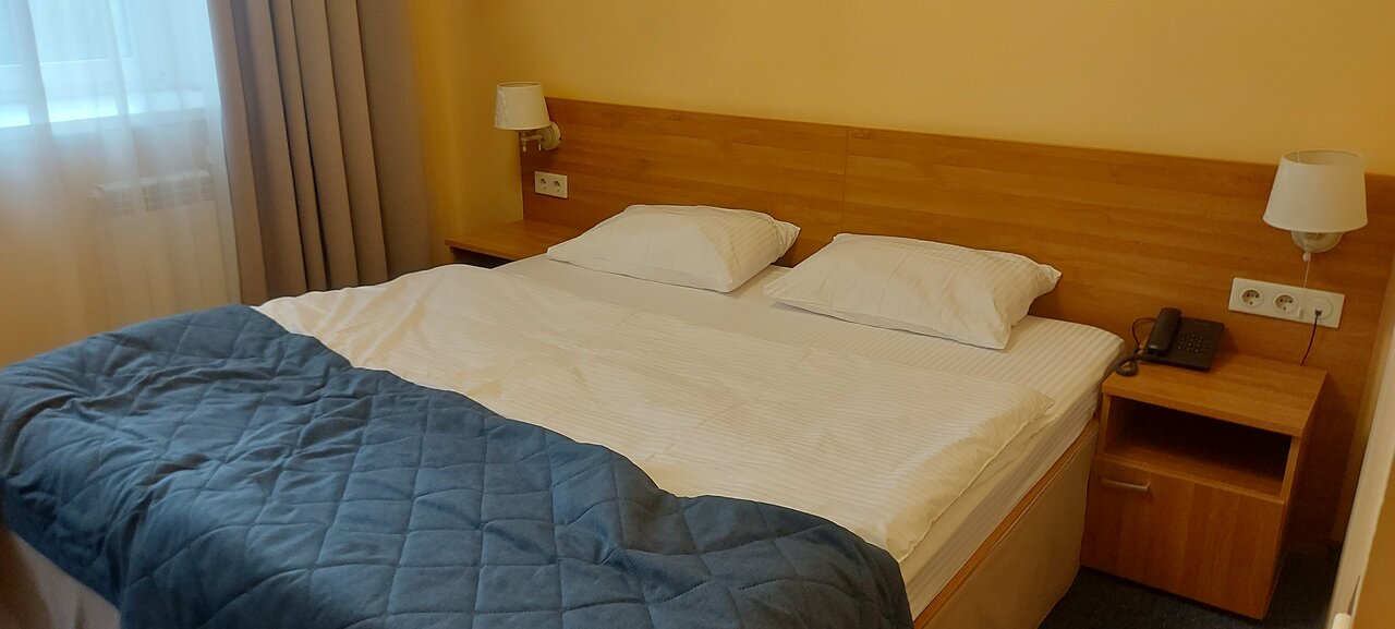 Нормальная гостиница, приехали ночью, администратор встретила. Номер, конечно отличается от фото- все гораздо проще выглядит. Но все чисто и еду можно заказ в любое время, но за ранее