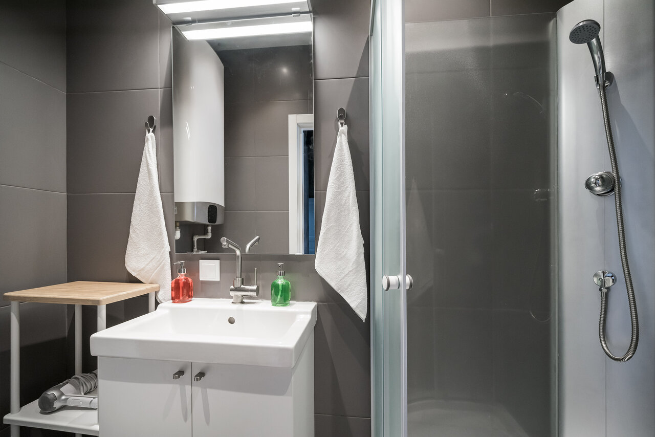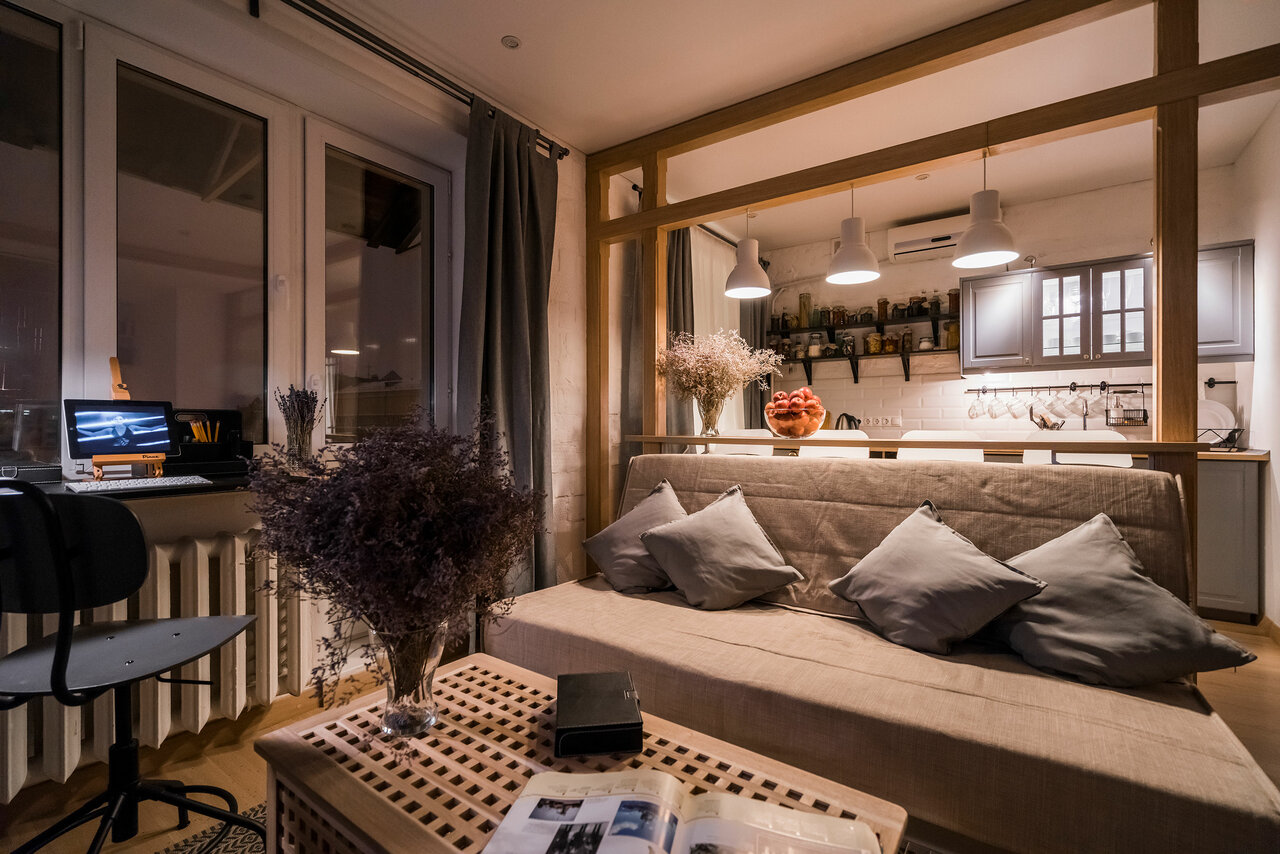 С виду апартаменты неплохие, но проживая в них понимаешь что они уже достаточно сильно потрепанные и давно не мешало бы вложиться в небольшой ремонт. Хотя бы элементарно отмыть желтые колонки, сменить накидку на диване. Ну и давайте честно, за свою стоимость которую они предлагают, можно снять номер в пятизвездочном отеле в Москве, где тебе и нормальное кол-во полотенец дадут, средств для мытья и т.д. В данном случае даже по маленькой бутылочки воды не было. За такие деньги, можно остановиться вместе и по лучше в разы.