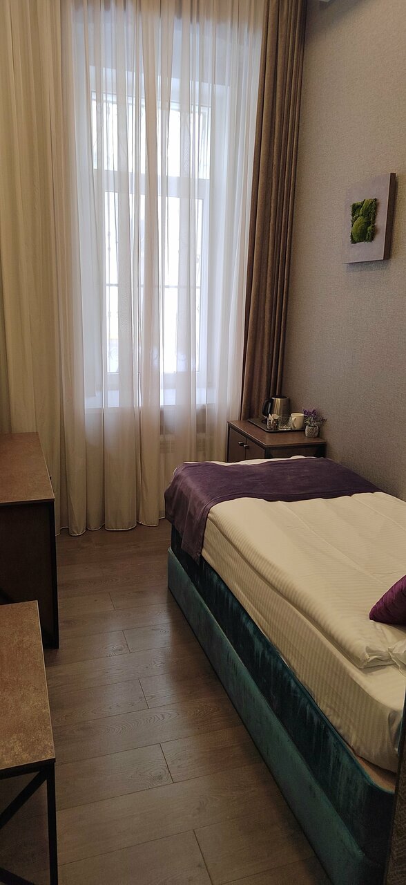 Отель понравился очень, были впервые в нём, уютный и тихий, завтраки приносят в номер за доп плату, всё свежее, вкусное, чистота в номере, забота о постояльцах круглосуточная, потолки в номерах высокие, это так необычно и круто, матрас аскона, белье чистое, санузел большой, отель находится в доме 1903 года постройки, до красной площади пешком 20-25 минут, после насыщенного дня возвращаться в отель очень хотелось, закрываешь входную дверь и после шума и суеты попадаешь в атмосферу покоя и тишины, рекомендую от души