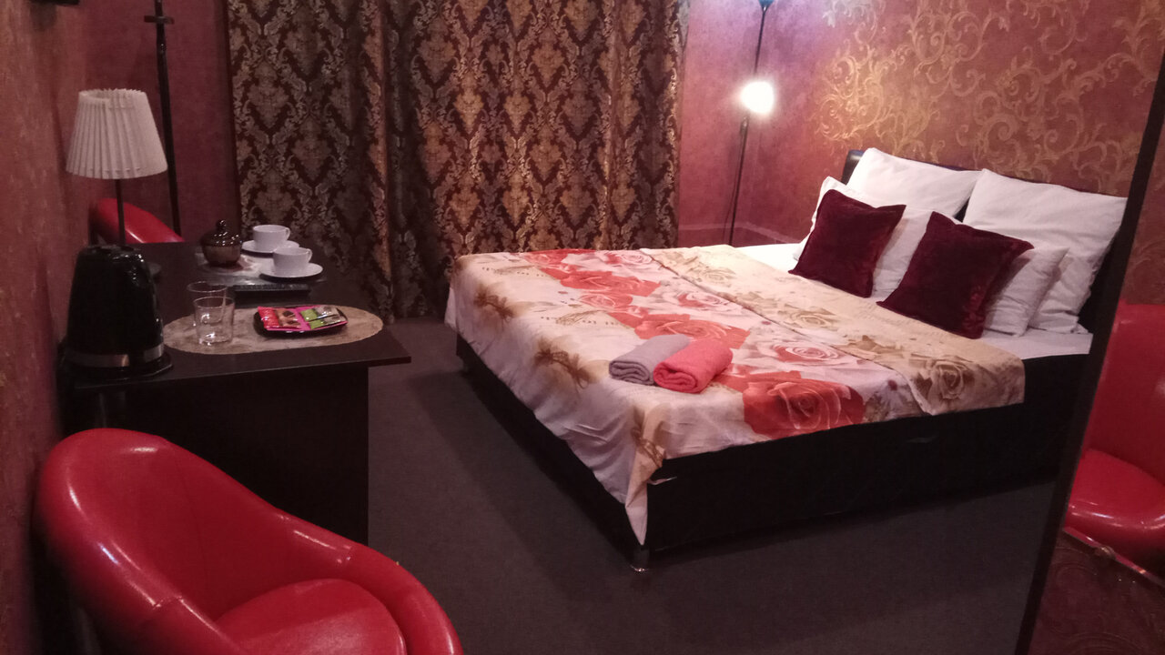Услуги: — Номера от 1500 до 2500 ₽ за ночь, включая отель на час. — Бесплатная парковка, Wi-Fi, общая кухня, холодильник, чай/кофе в номерах. — Ванные комнаты с джакузи, халаты, тапочки. — Телевизор, посуда, микроволновка, плита, утюг, уборка. — Круглосуточная стойка регистрации.