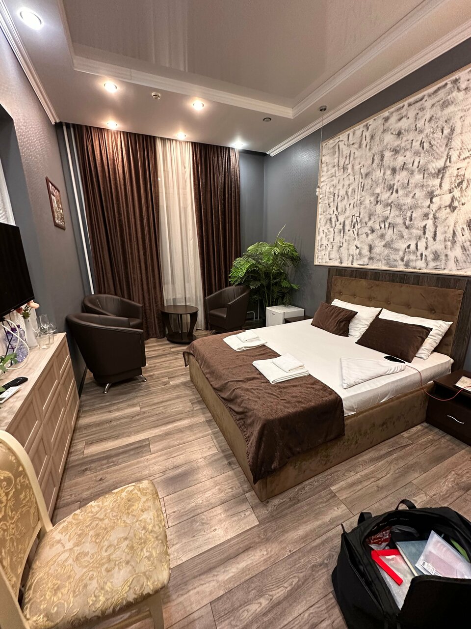 Непонятны мне хорошие отзывы у этого отеля. Цена достаточно высокая за то, что предлагается. Отель объективно на 3. Ремонт может и свежий но веет 90ми, все некачественное, скрипит, двери плохого качества, слышно соседей. Повторно сюда вернуться точно не хочется